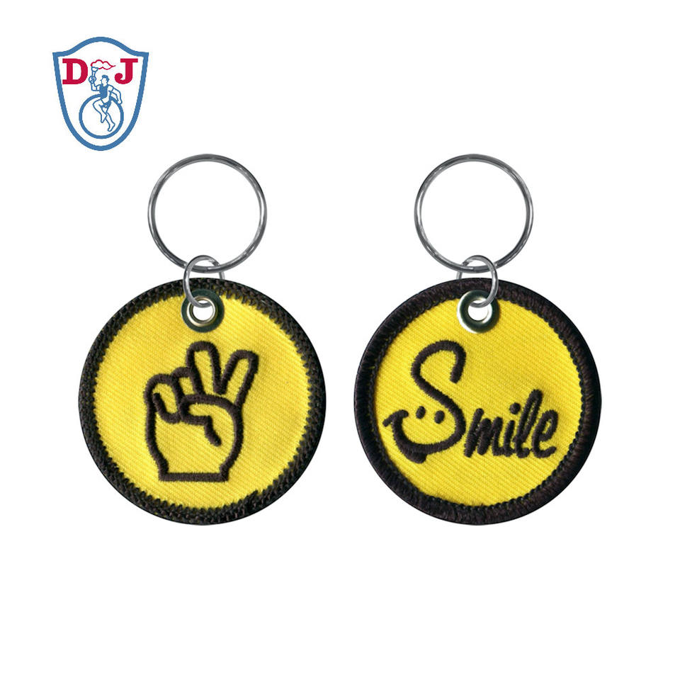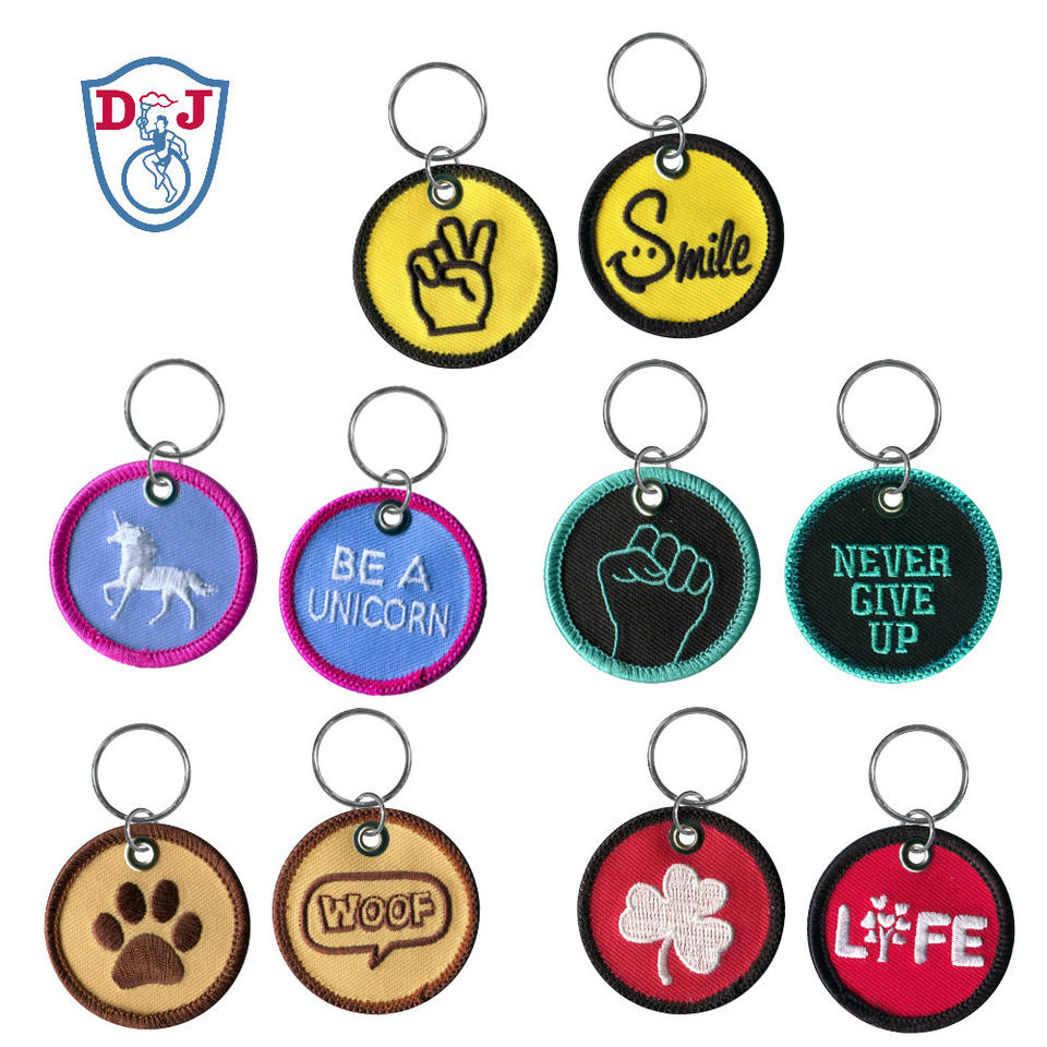 Porte-clés en tissu sergé personnalisé, porte-clés brodé, étiquette de clé