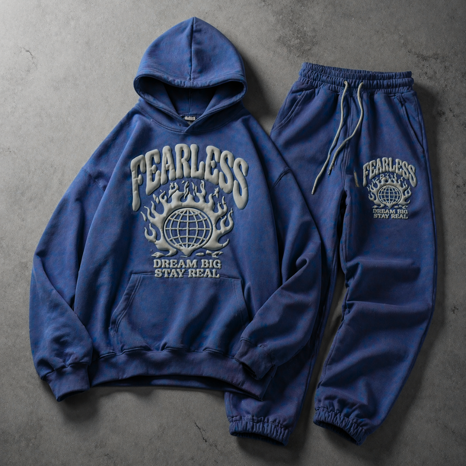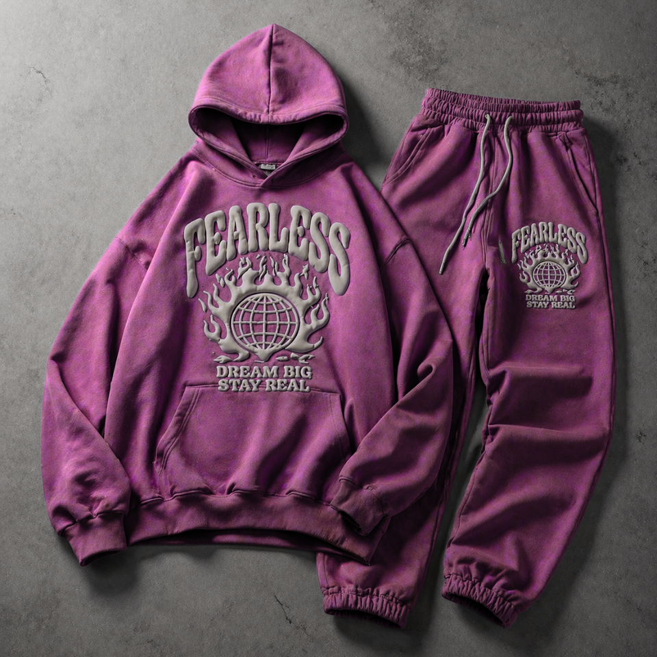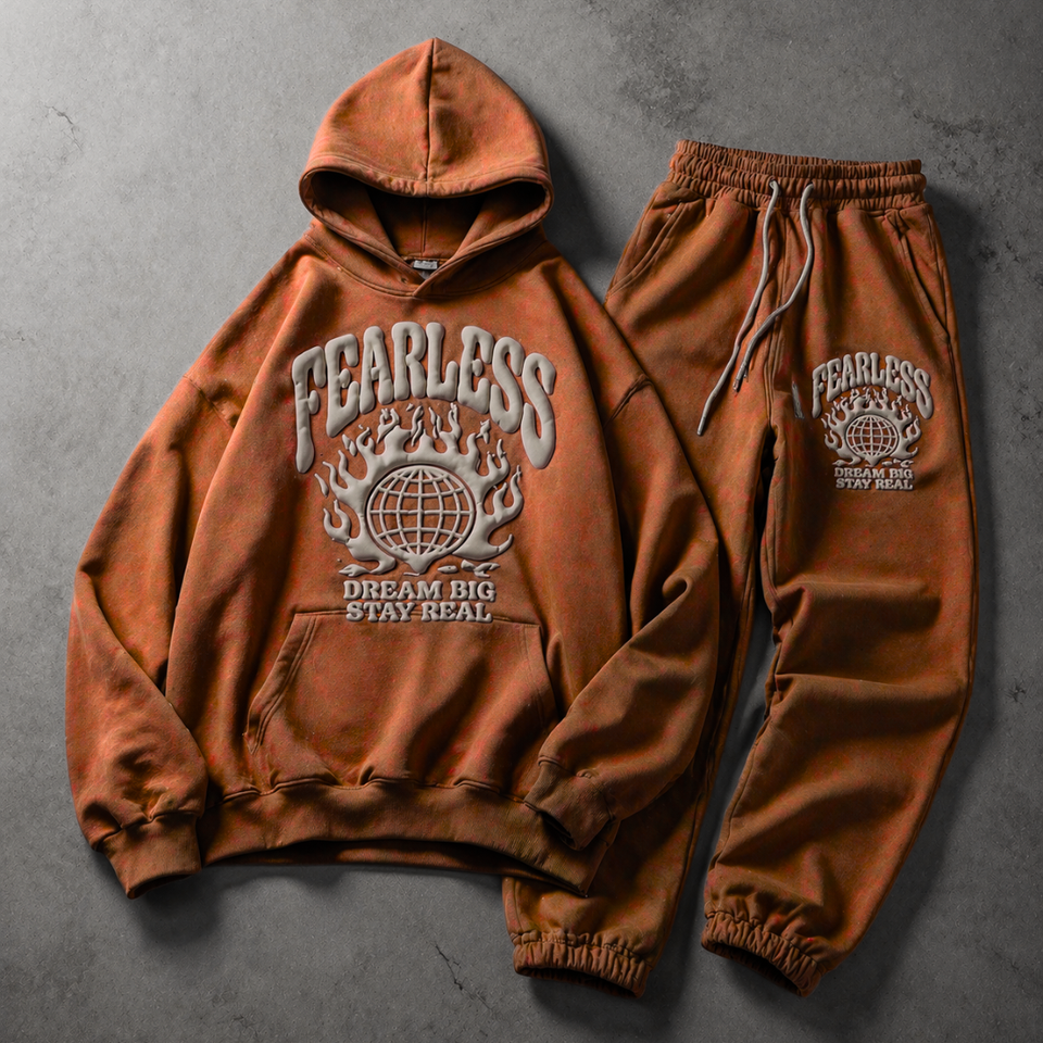 Ensemble deux pièces personnalisé en tricot 100 % coton respirant, survêtement jogger avec impression en relief, style streetwear délavé à l'acide