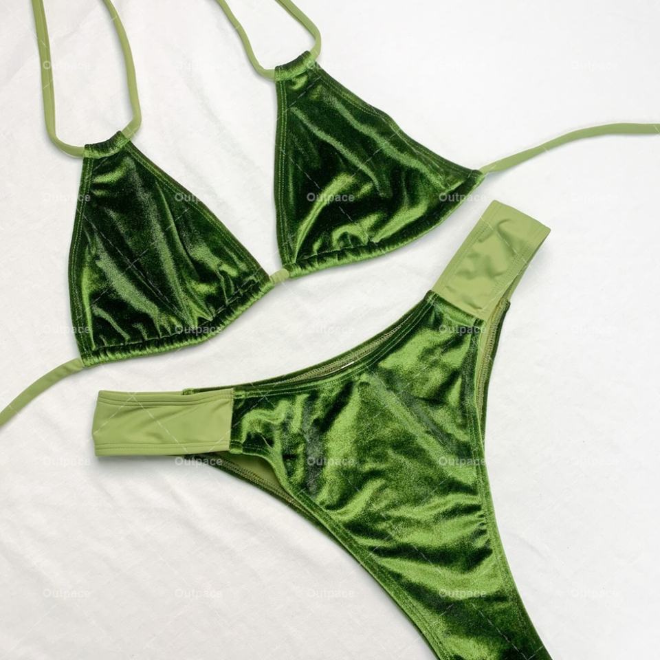Ensemble deux pièces personnalisé de luxe pour femme, maillot de bain uni sport taille haute, col en V, dos nu, style bandeau, grande taille, pour la plage