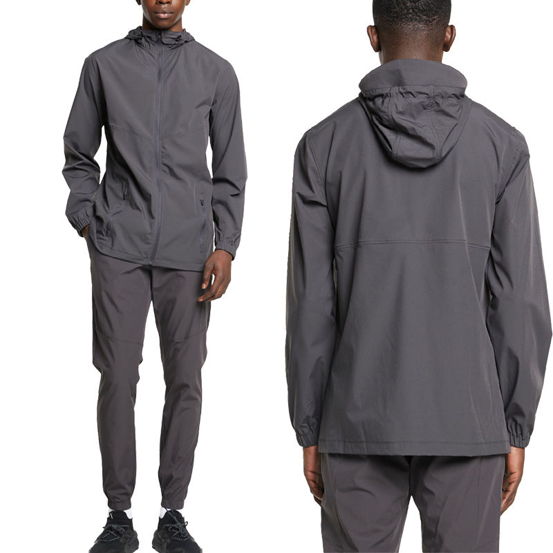 Streetwear personnalisé deux pièces ensemble de survêtements d'entraînement coupe-vent respirant en nylon et polyester avec fermeture éclair de couleur contrastée