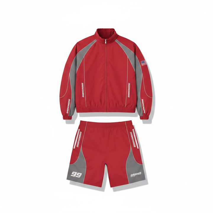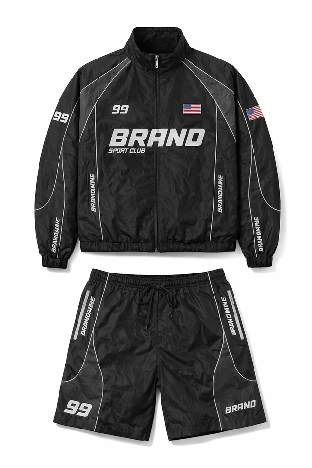 Ensemble de survêtement streetwear pour femme, deux pièces, hiver, grande taille, coupe-vent à capuche, veste courte zippée, 100% nylon et coton