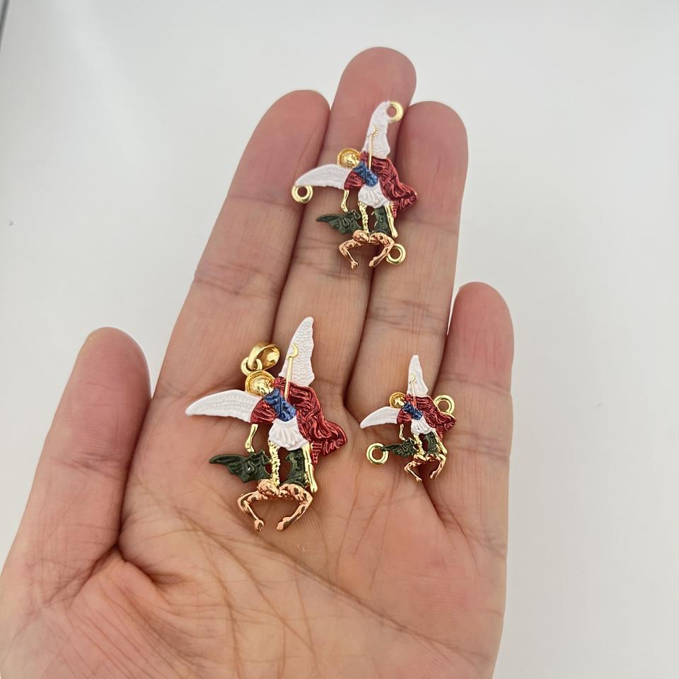 Pendentif en émail personnalisé à deux faces, Saint Michel Archange, plaqué or, charme religieux d'ange pour la fabrication de colliers et de bracelets, accessoire