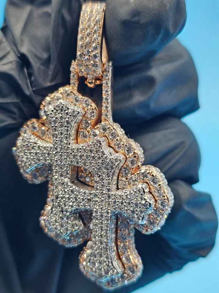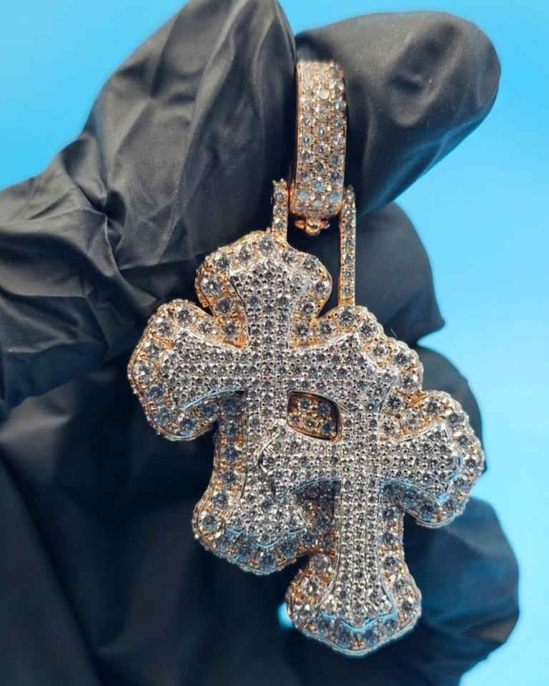 Pendentif croix bicolore personnalisé en argent 925, pendentif hip-hop, pendentif foi chrétienne, pendentif bling pour rappeur, pendentif religieux