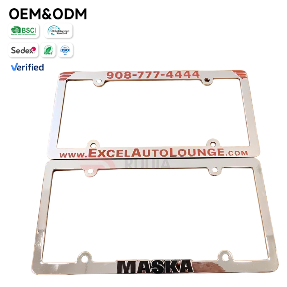 Cadre de plaque d'immatriculation personnalisé bicolore avec logo de concessionnaire, création graphique gratuite, OEM accepté, cadre de plaque d'immatriculation automobile