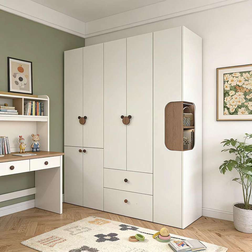 Armoire de rangement pour enfants autoportante bicolore personnalisée avec coins arrondis et plusieurs tiroirs pour l'organisation de la chambre des garçons et des filles