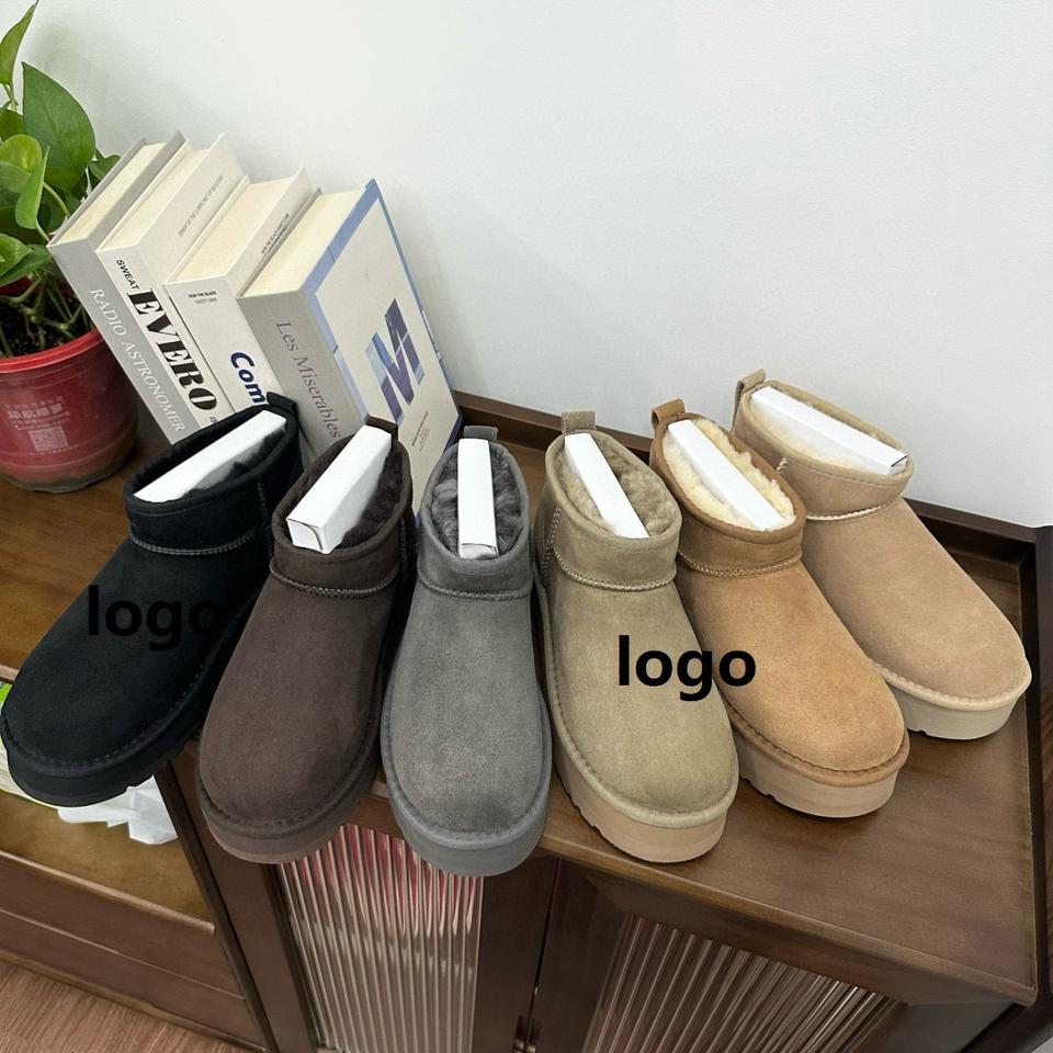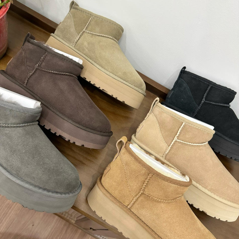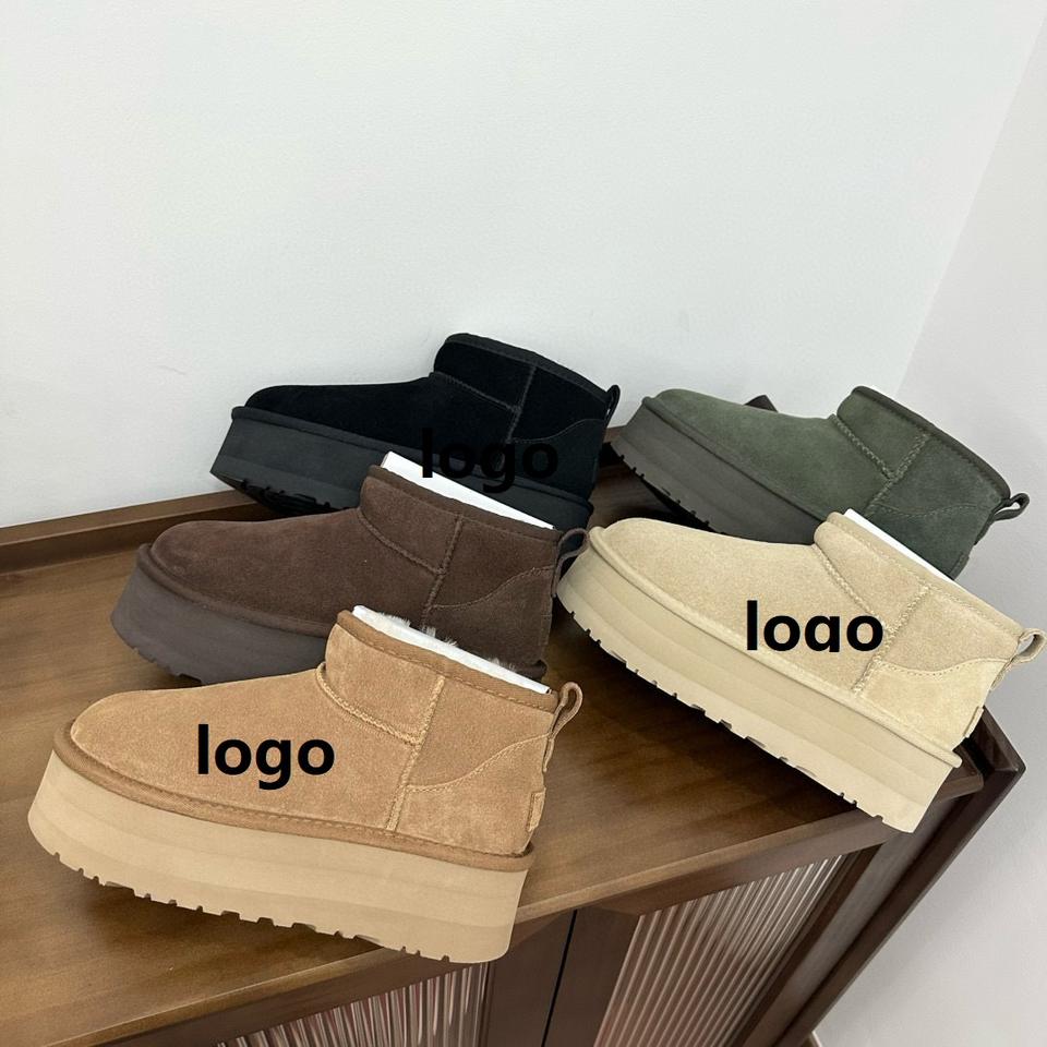 Bottes mi-hautes en cuir véritable douillet personnalisées UG, chaudes, en peau de veau, pour l'intérieur et l'extérieur, neige, hiver, fourrure de mouton moelleuse, avec semelle intérieure en PVC, unisexe