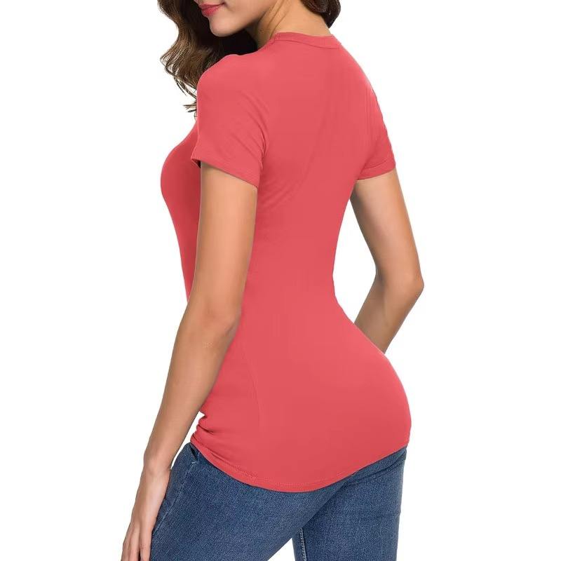 T-shirt à manches courtes ajusté pour femmes personnalisé 95% Viscose 5% Spandex Crewneck Basic Tee Tops Plus Size Stretchy Blank Canvas