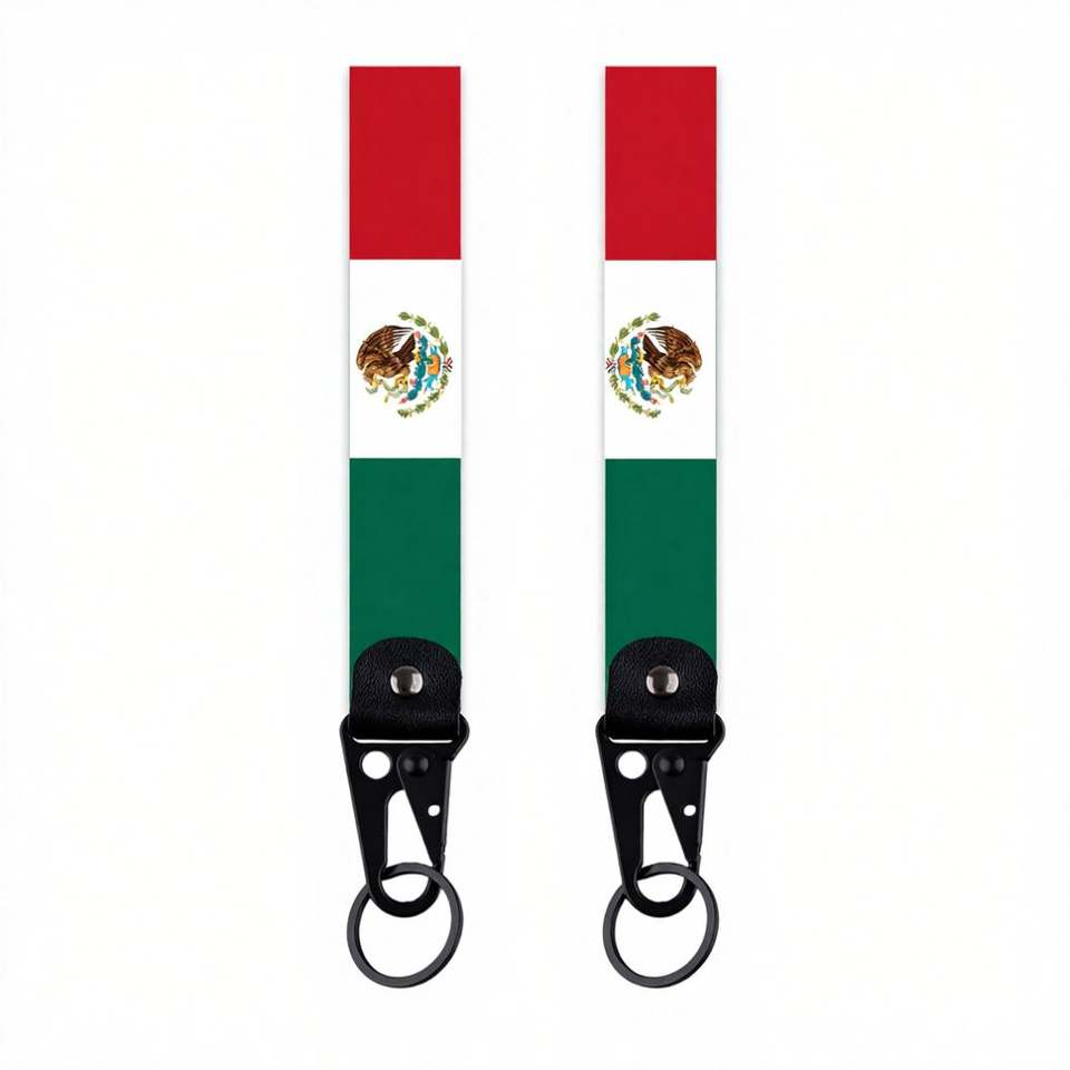 Porte-clés personnalisé drapeau États-Unis Mexique - Ruban polyester haute qualité et pendentif de clé de voiture en alliage, cadeau en gros pour activités sportives