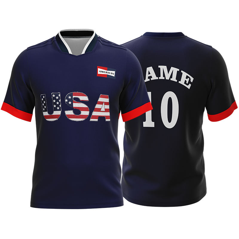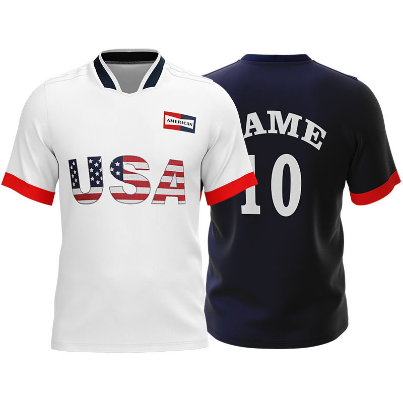 Ensemble de maillots et shorts personnalisés de l'équipe américaine, drapeau américain, col en V, nom, numéro, logo, uniforme de football, séchage rapide, respirant, antibactérien, taille plus