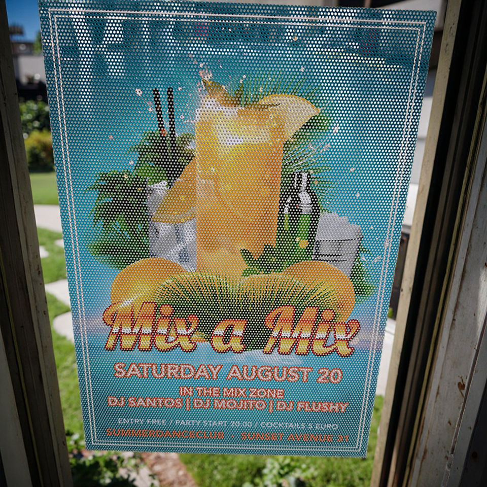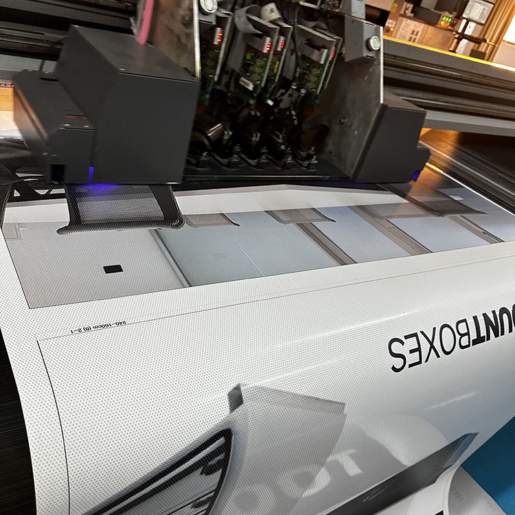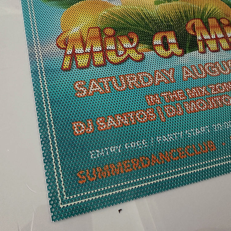 Autocollants graphiques de fenêtre en vinyle Perf à vision unidirectionnelle imprimés UV personnalisés autocollant publicitaire en vinyle perforé transparent