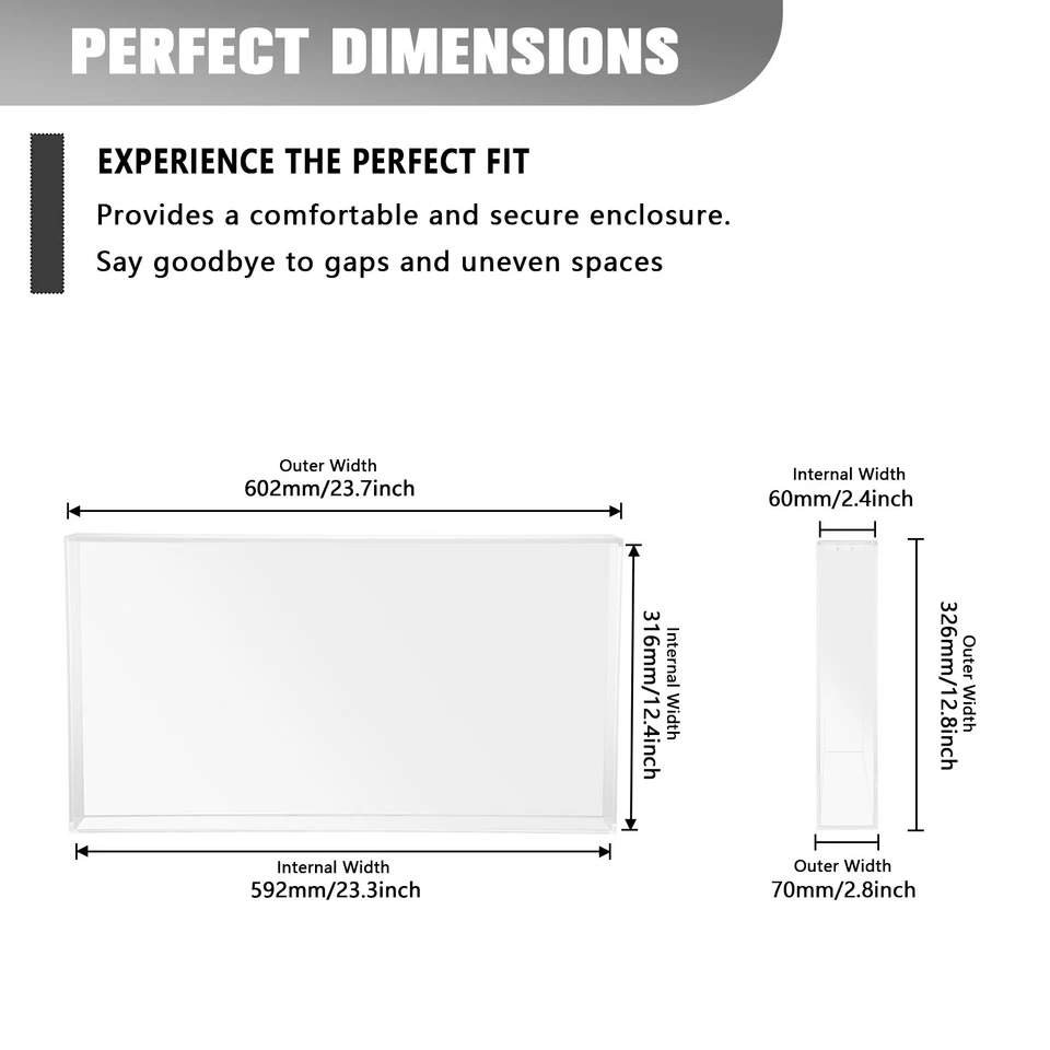 Dimensions intérieures:23,3 po (L) x 12,4 po (l) x 2,8 po (H)