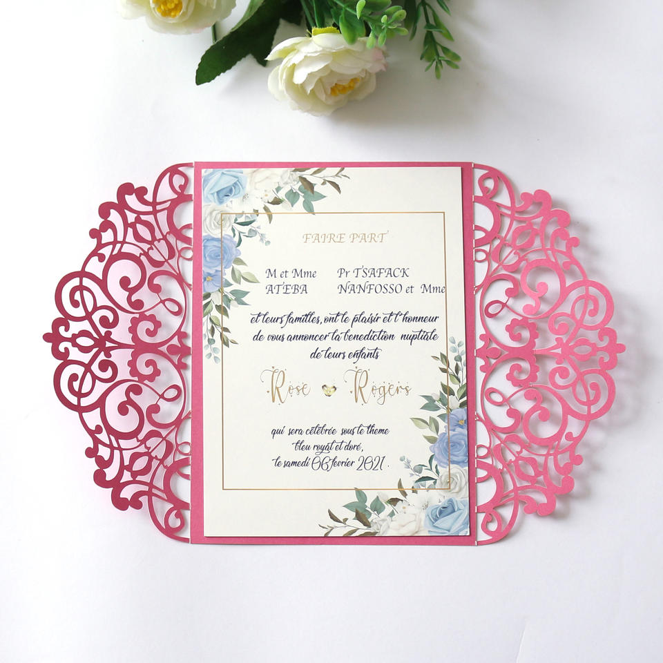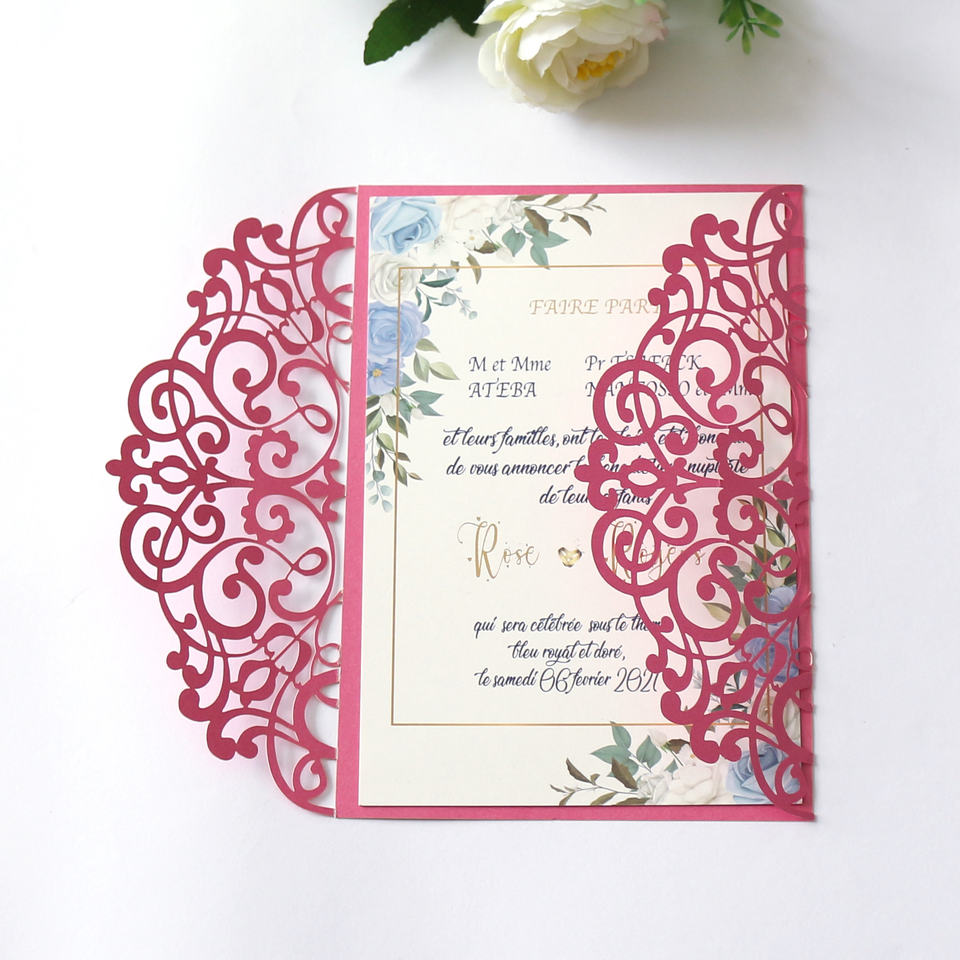Nom du produit:Carte d'invitation de mariage personnalisée découpée au laser au design Unique et personnalisé