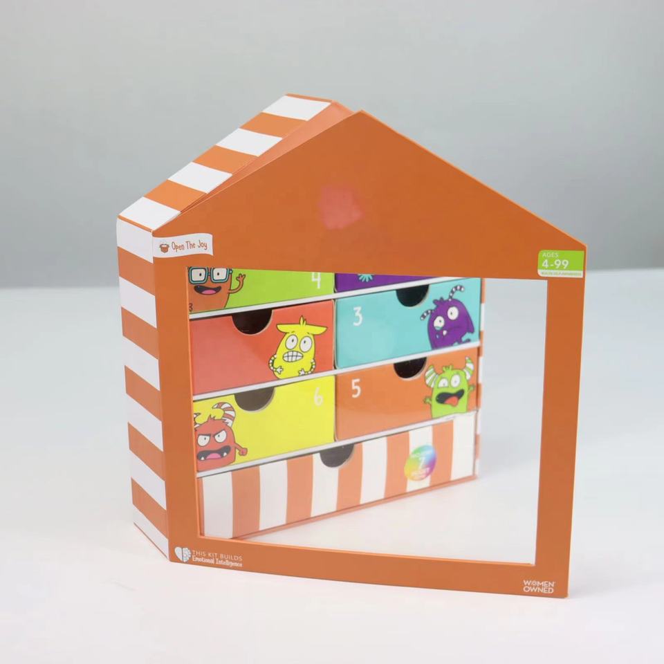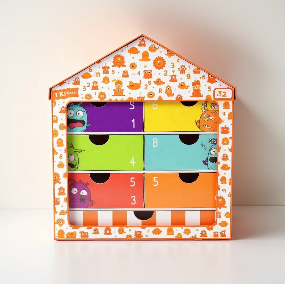 Boîte personnalisée unique en forme de maison avec calendrier de l'avent Tiroir cadeau en papier au design gaufré pour Noël Boîte surprise aveugle pour Halloween
