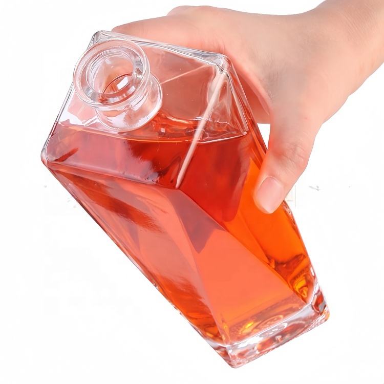 Personnalisé Unique Forme 500ml 750ml Carré Liqueur Bouteille En Verre Bouchon de Liège pour Brandy Vodka Gin Rhum Whisky Sérigraphie Surface