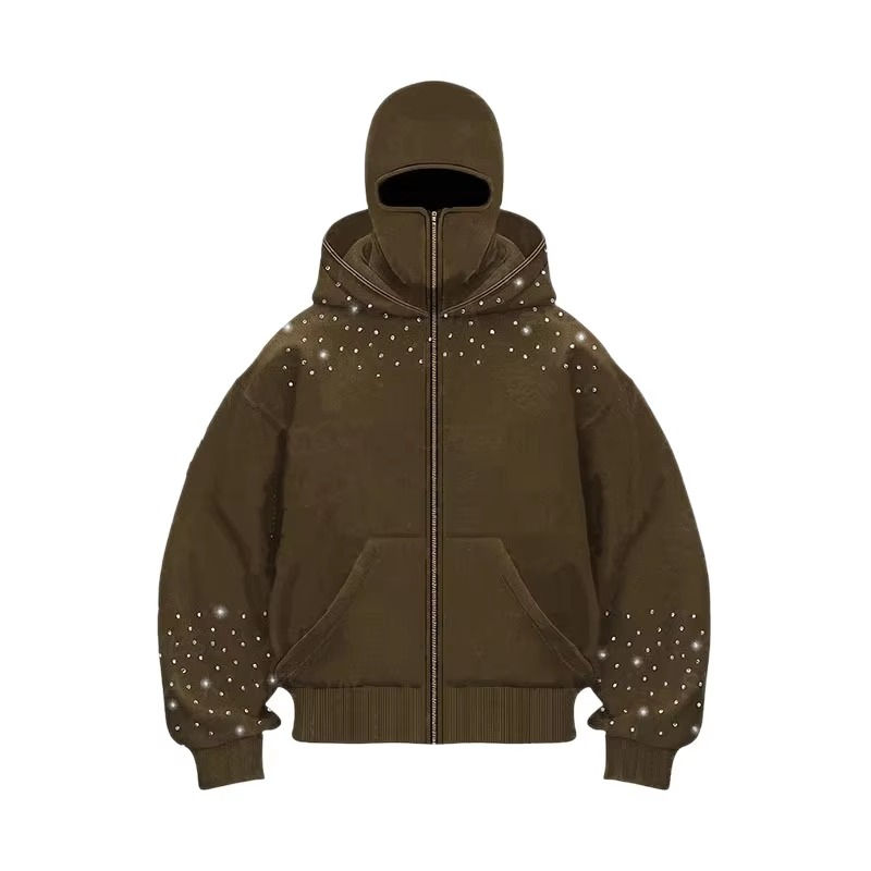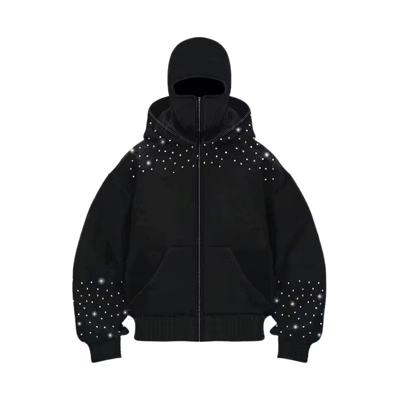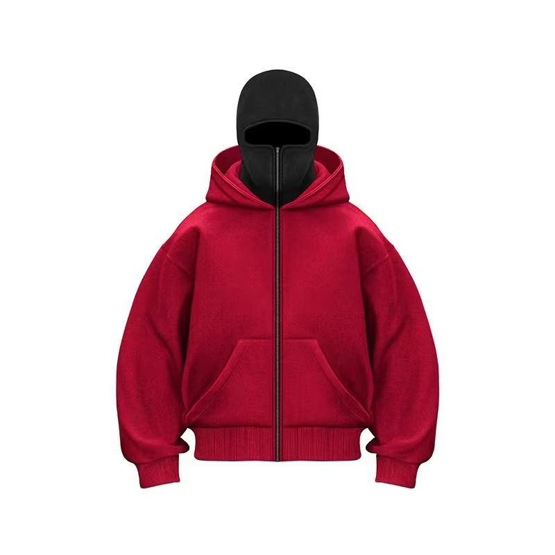 Sweat à capuche ninja à épaules tombantes en coton 100% de style unique personnalisé, épais et ample, 450 g/m², en molleton français, avec masque intégré, fermeture éclair pour hommes