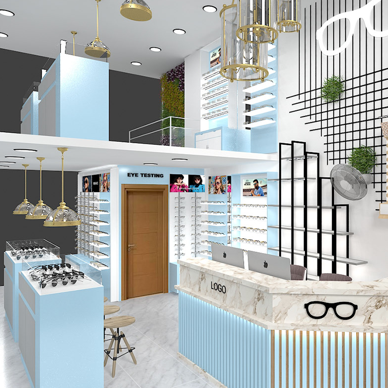 Vitrine unique personnalisée de lunettes de soleil pour la vente au détail de lunettes Vitrines de meubles de magasin d'optique de décoration d'intérieur