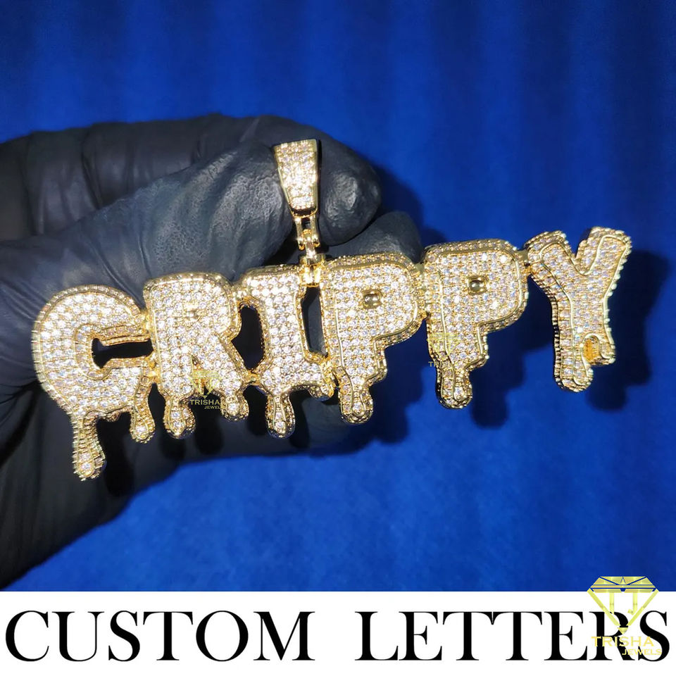 Pendentifs fins unisexes et breloques dégoulinant de lettres nom Bling VVS Lab Grown Diamond cadeau de bijoux personnalisé