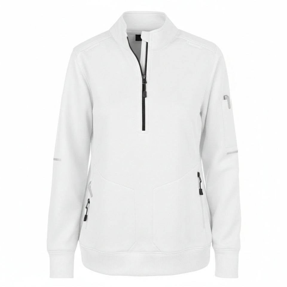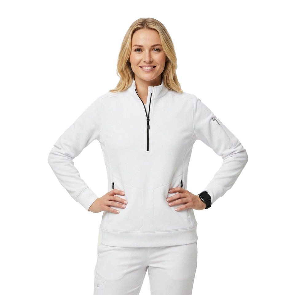 Blouse médicale unisexe personnalisée, fonctionnelle, multi-poches, à col zippé, uniforme d'infirmière, avec poignets côtelés, pour l'échauffement