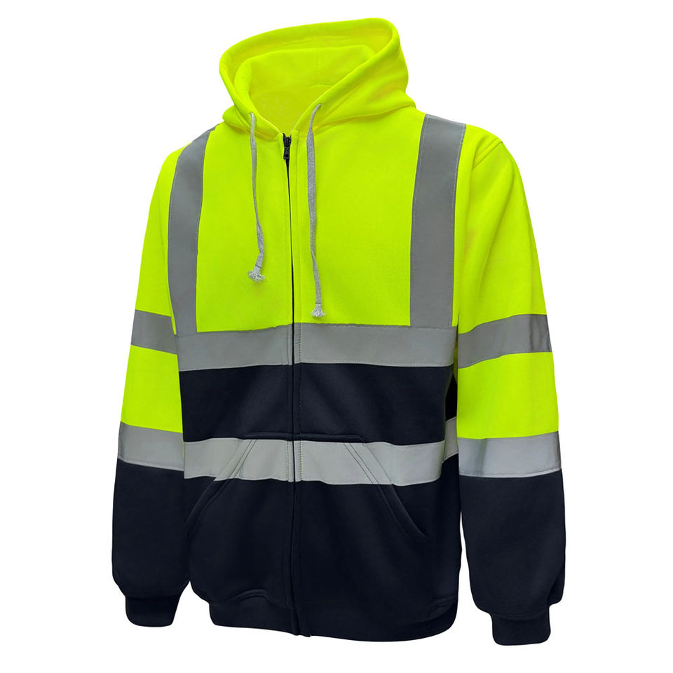 Sweat à capuche de sécurité personnalisable unisexe haute visibilité, classe 1, imperméable, respirant, avec empiècements, doublure polaire, fermeture éclair