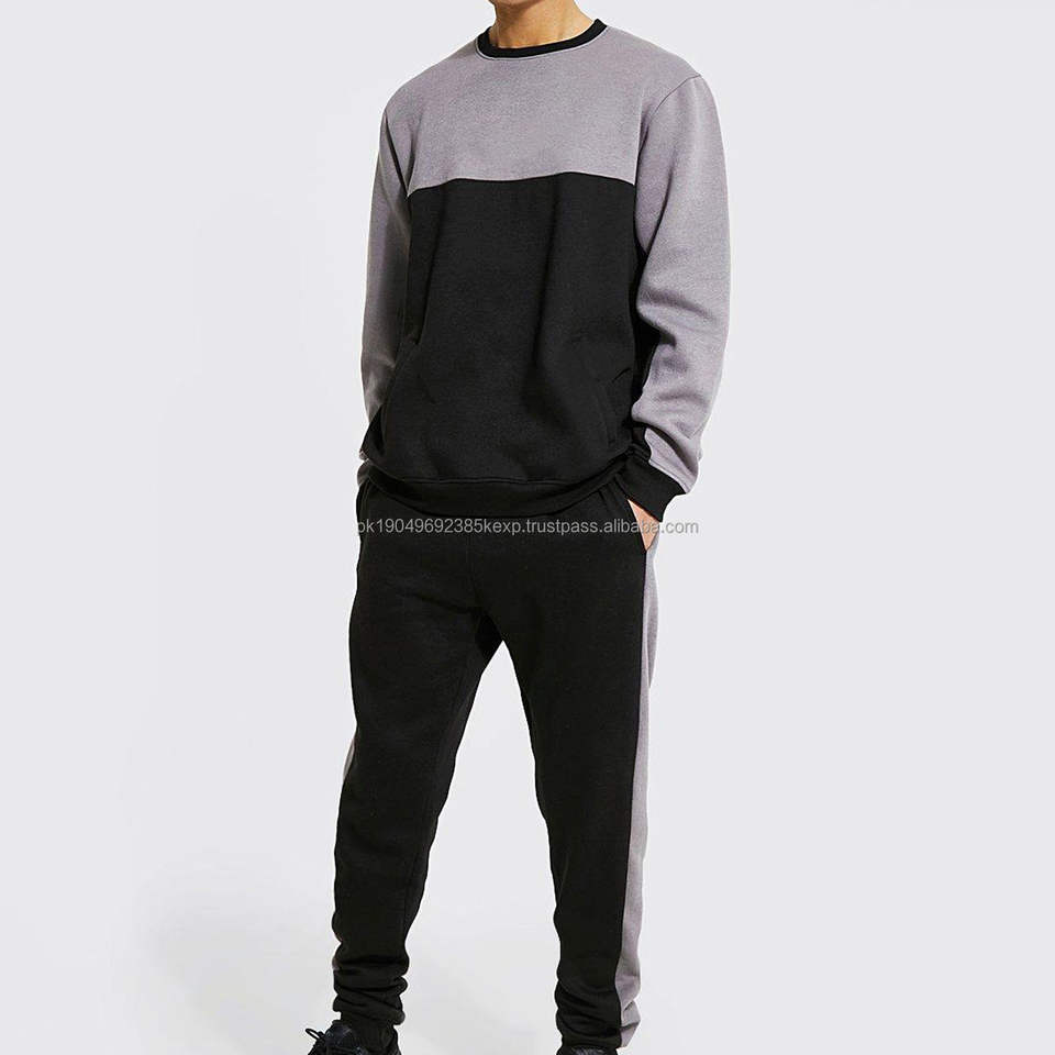 Ensemble de survêtement unisexe personnalisé en noir et gris uni, avec panneaux, séchage rapide et respirant, ensemble de survêtement à capuche