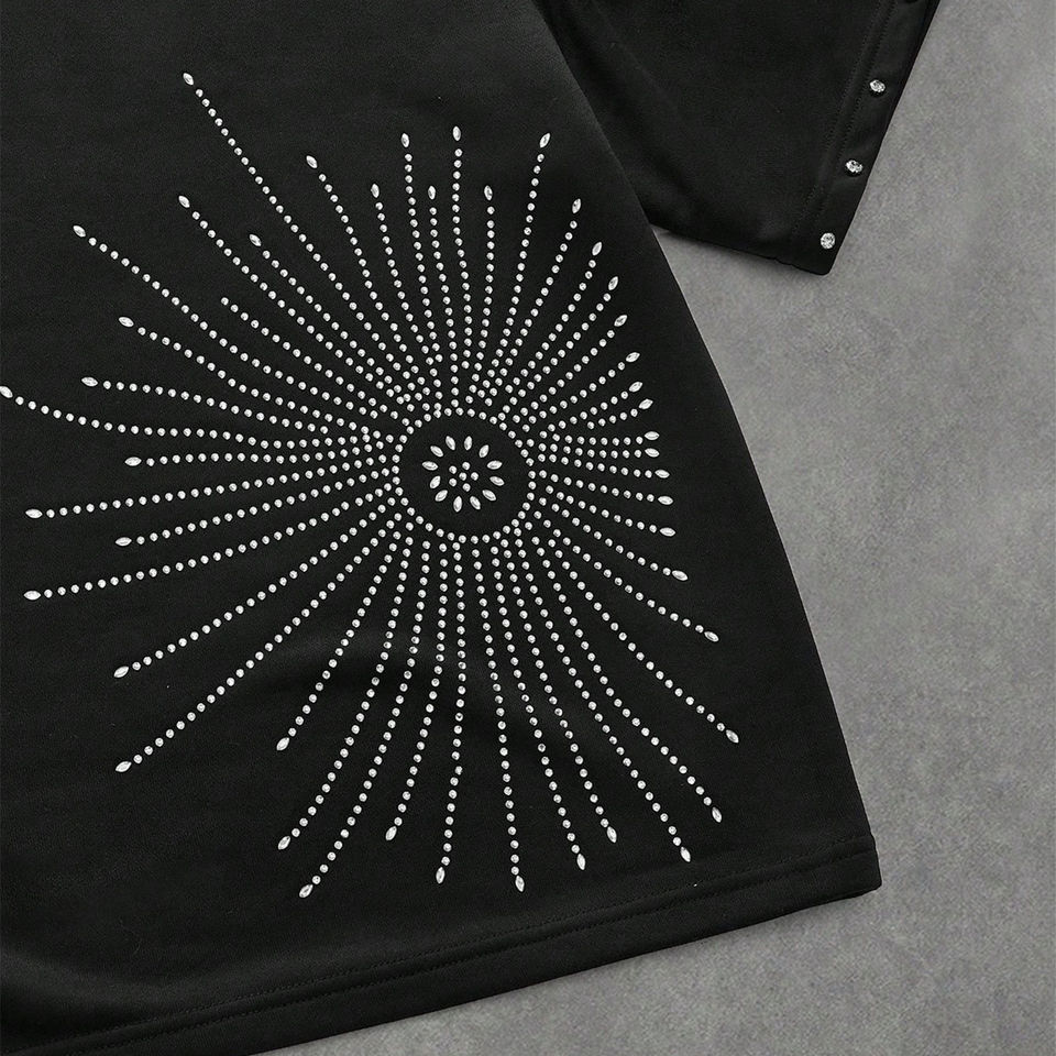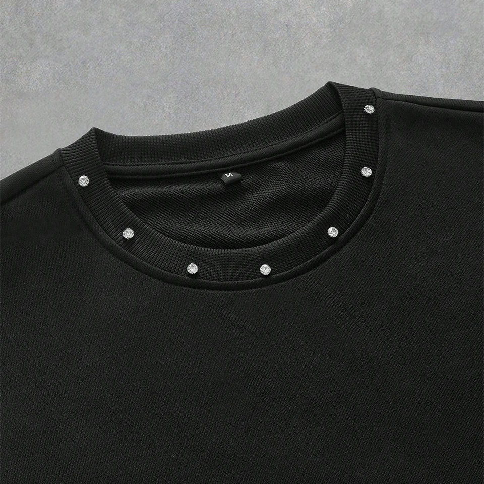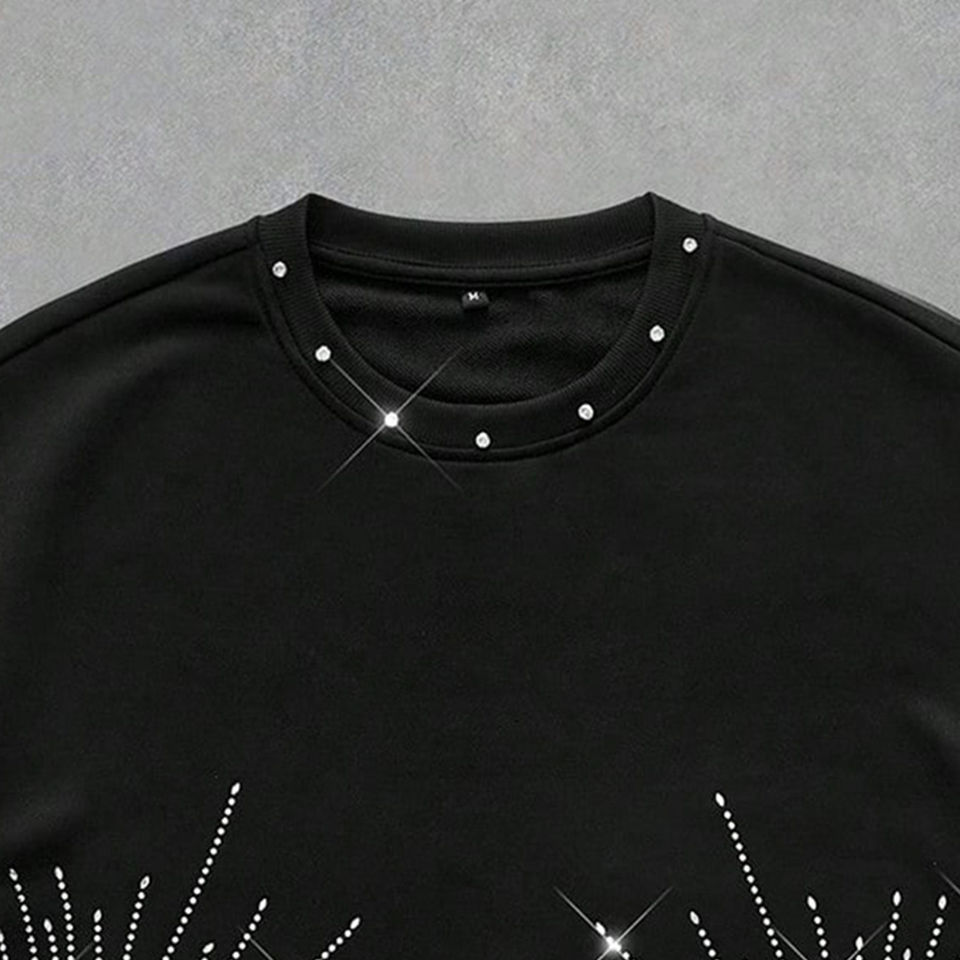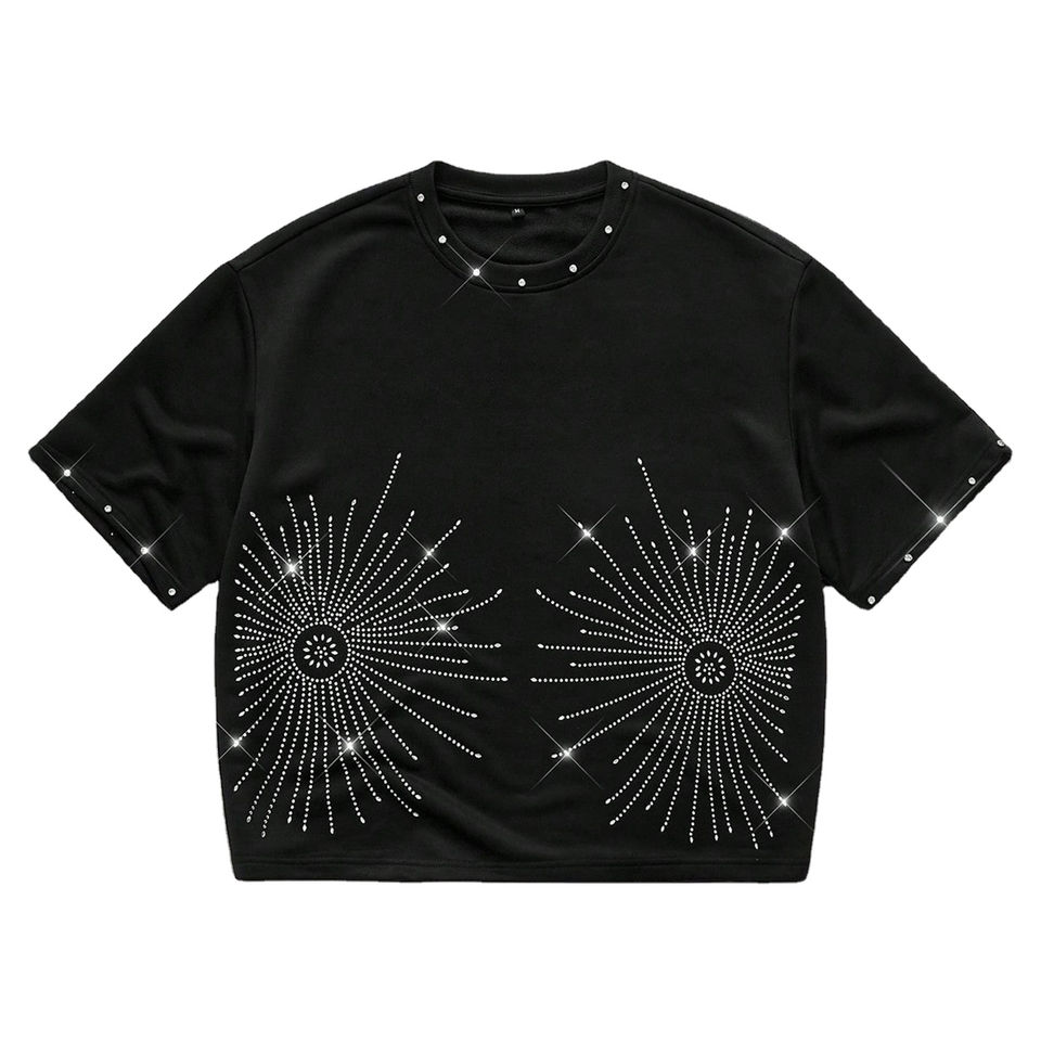 T-shirt unisexe personnalisé à col rond brodé de strass, 100 % coton de haute qualité 220 g, coupe ample oversize, manches courtes, été
