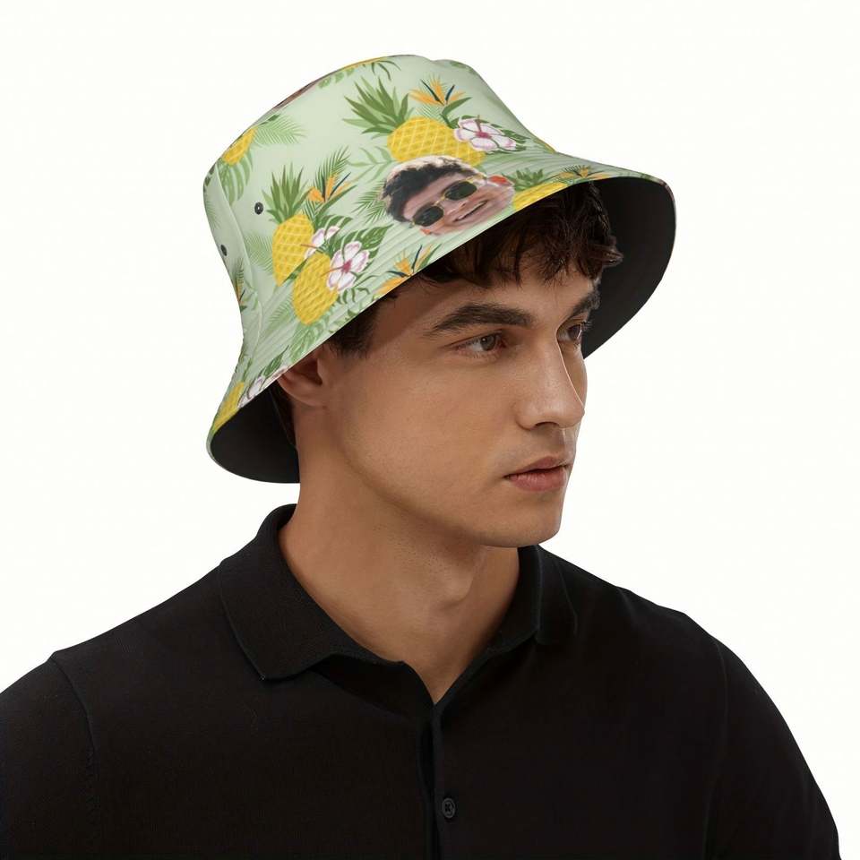 Chapeau seau d'été unisexe personnalisé Fleur d'ananas tropical Conception de visage personnalisé Casquette respirante de style dessin animé pour le voyage