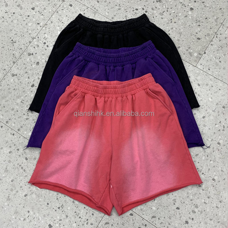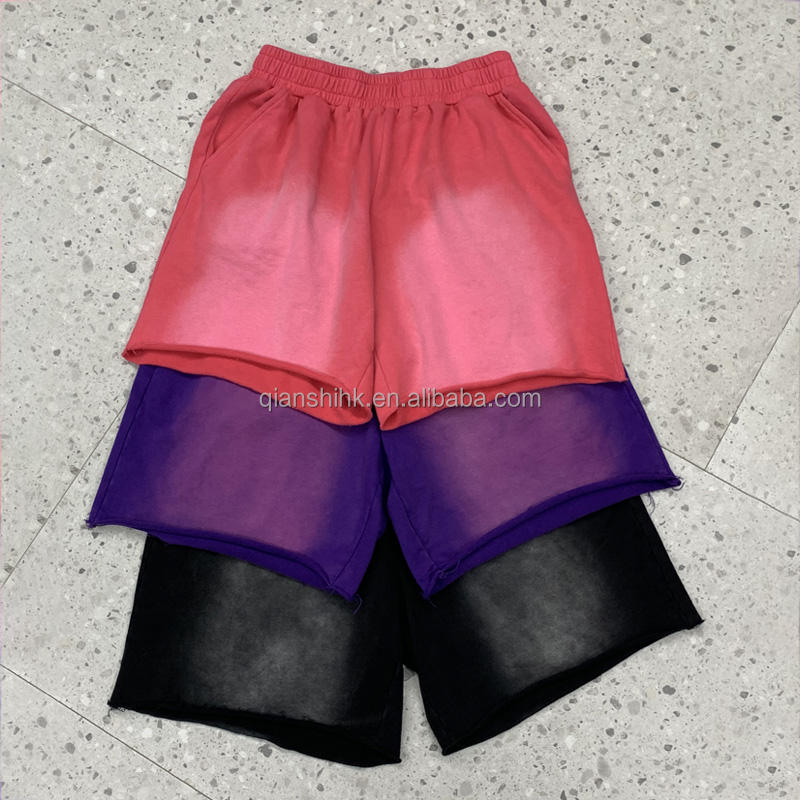 Personnalisé unisexe sueur soleil fondu Shorts bord brut français éponge lourd coton décontracté Gym course hommes acide lavage Shorts pour hommes