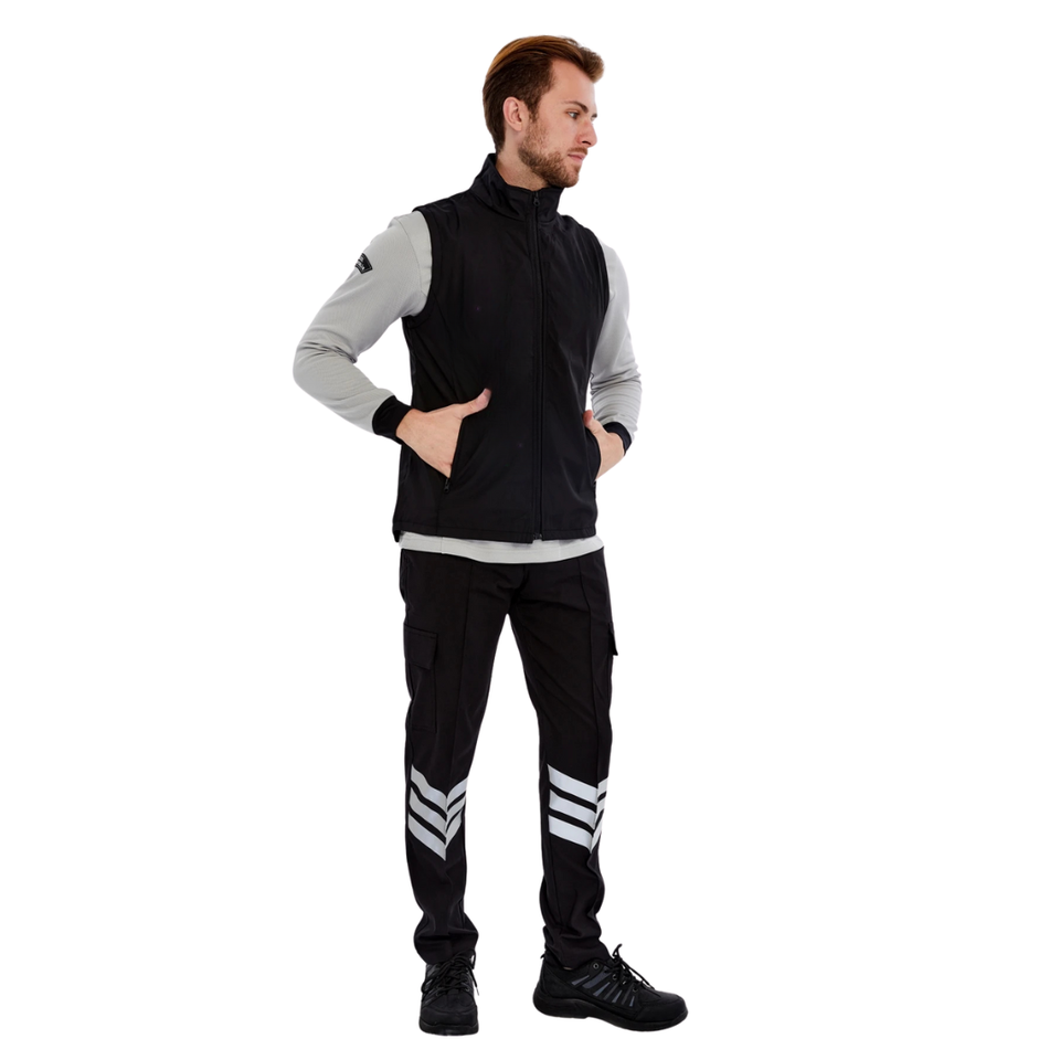 Gilet de travail unisexe personnalisé, fermeture éclair, imperméable, coupe-vent, standard, uni, rembourrage en coton, tissu tissé en polyester 220g, 4 poches, décontracté