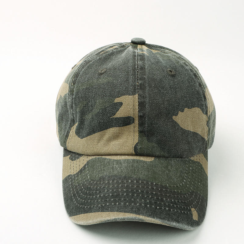 Casquette de baseball personnalisée non structurée à 6 panneaux, style Dad Hat, avec sangle réglable à boucle métallique, visière incurvée, calotte souple, motif camouflage uni pour homme
