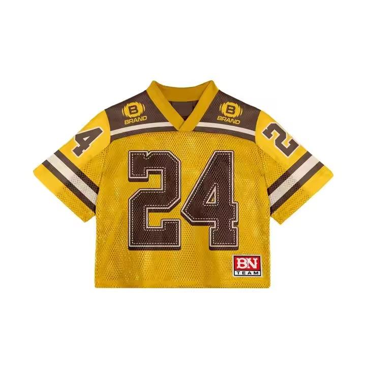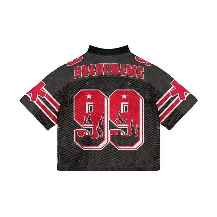 T-shirt de football en jersey maille ample à col en V personnalisé, séchage rapide, style vintage streetwear, en polyester, pour le football américain
