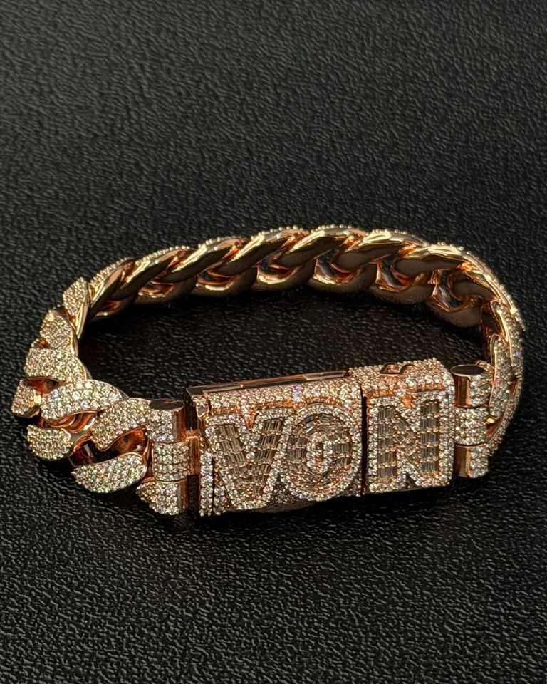 Chaîne cubaine en moissanite VVS personnalisée, style hip-hop, bracelet en diamant baguette glacé, lettre de nom, bijoux fins tendance pour hommes