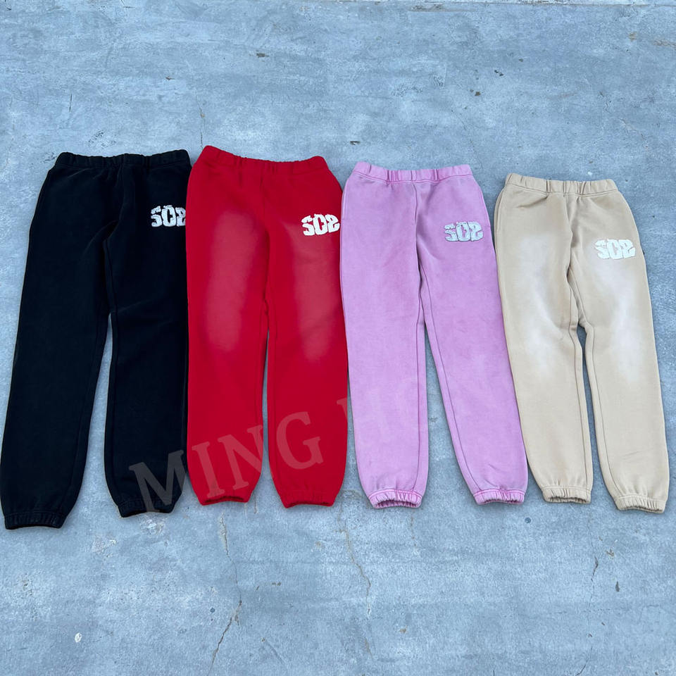 Pantalon de jogging personnalisé de différentes couleurs avec logo brodé d'autocollants Pantalon de survêtement en éponge de haute qualité lavé à l'acide
