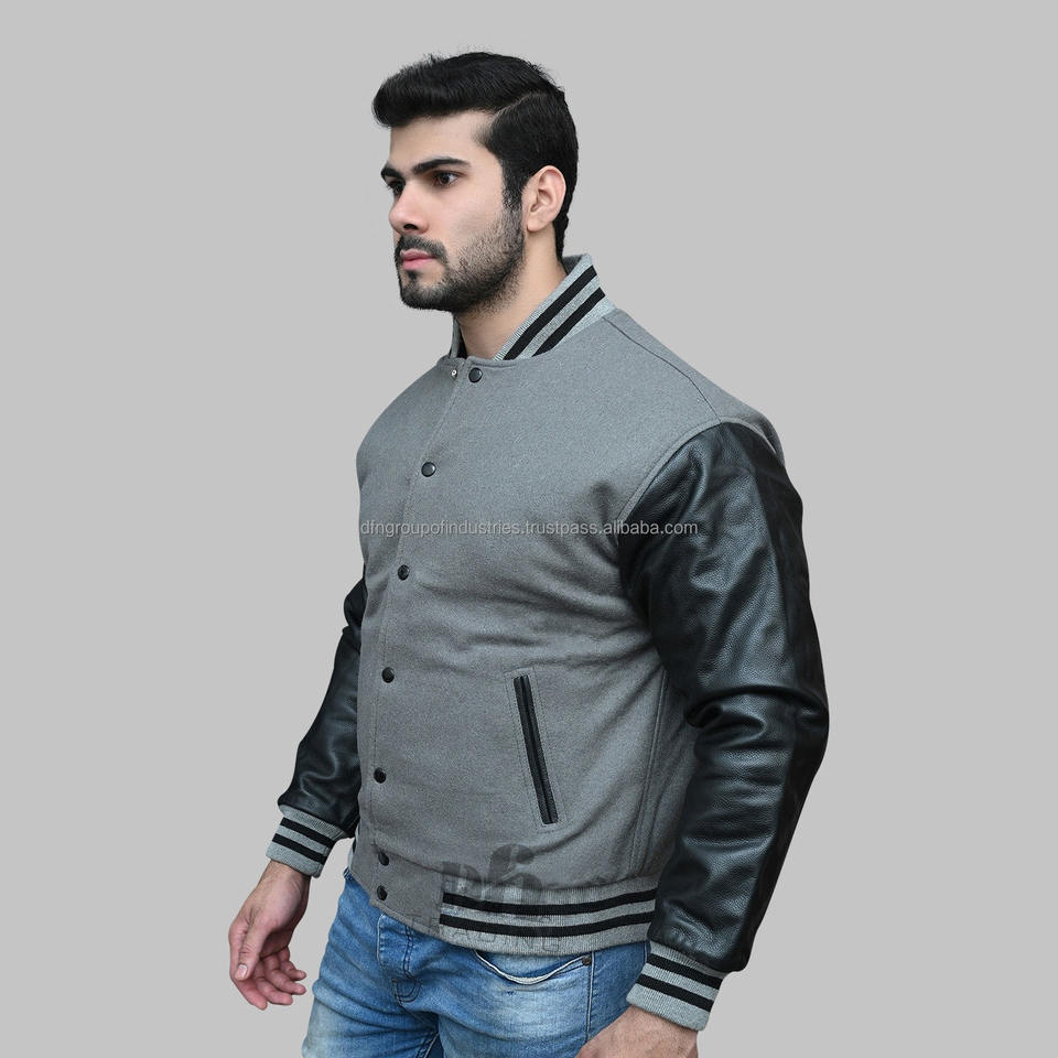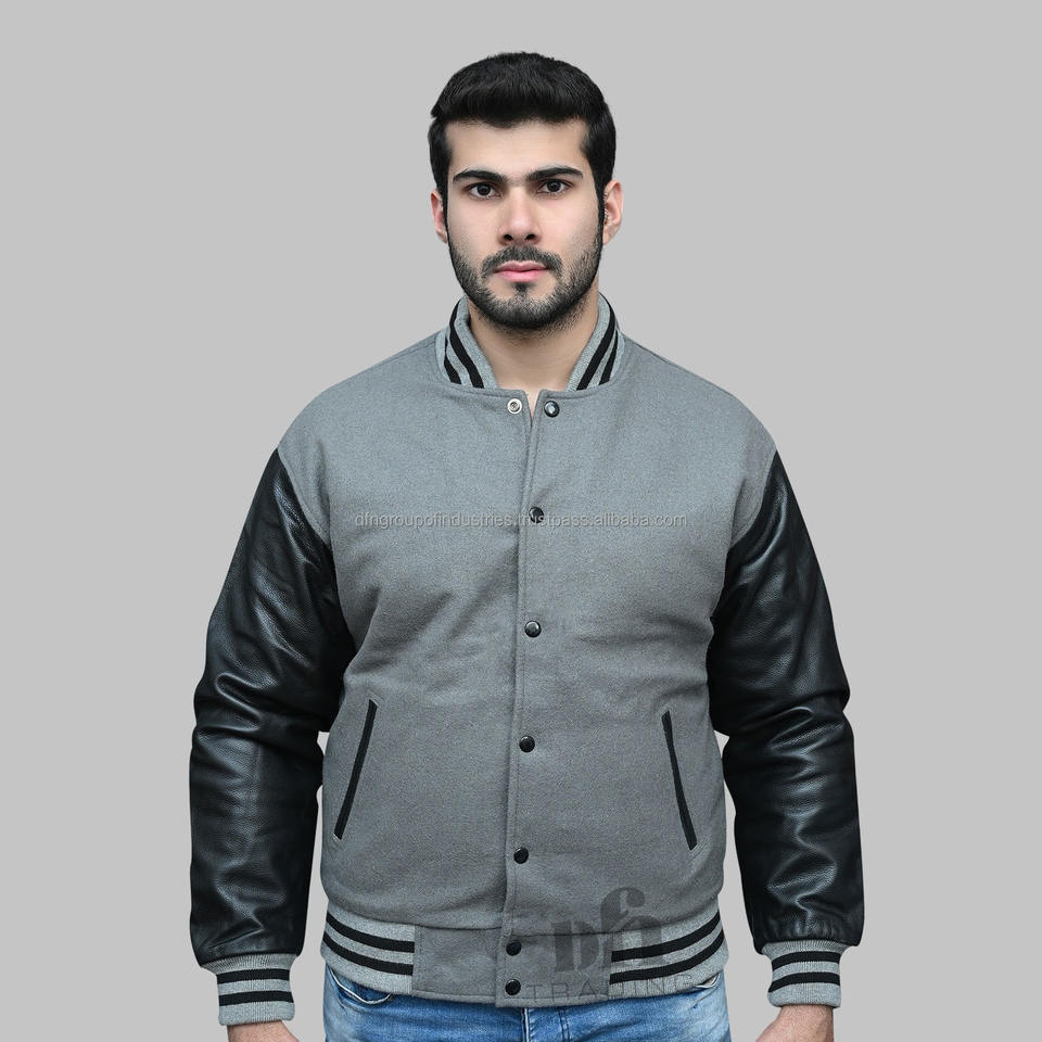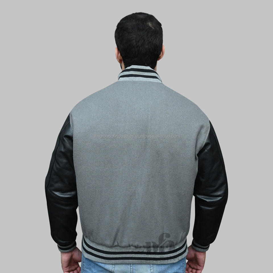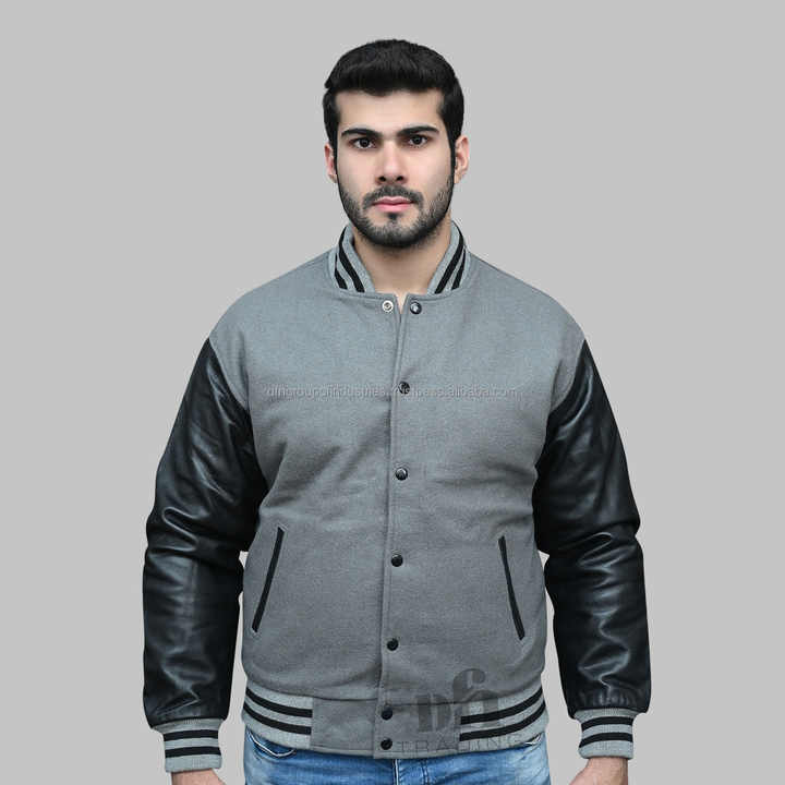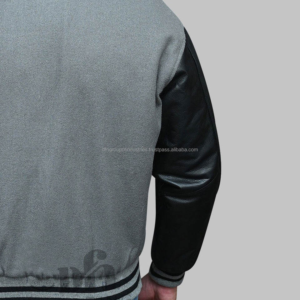 Veste de baseball à logo brodé universitaire personnalisé avec col montant respirant en laine et manches en cuir enduites d'hiver