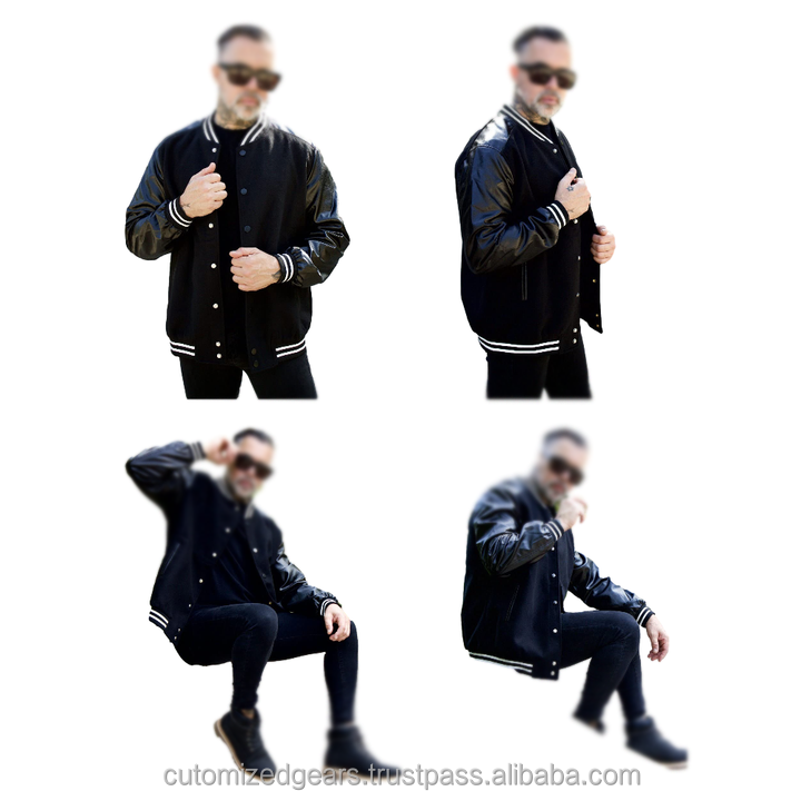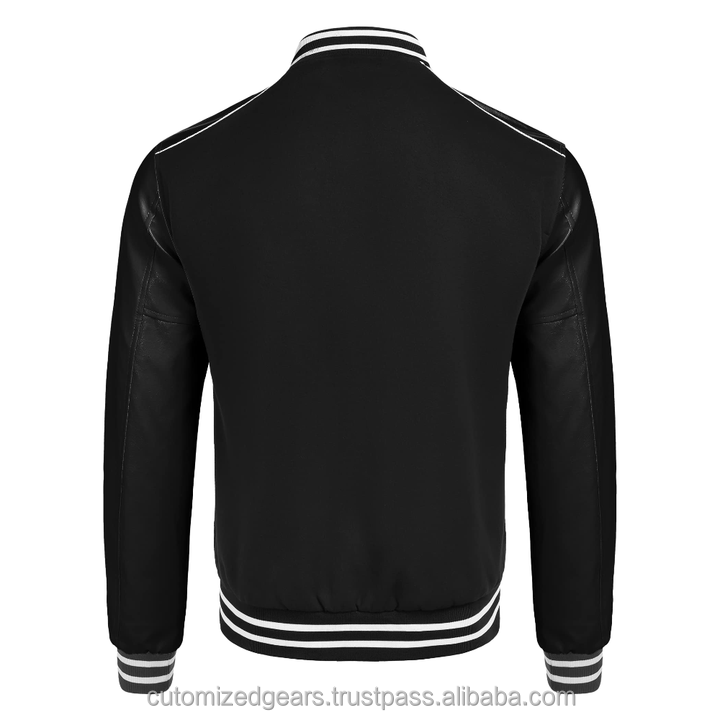 Veste universitaire personnalisée, veste de baseball, corps en laine, manches en cuir, logo personnalisé, vestes universitaires