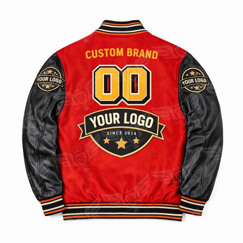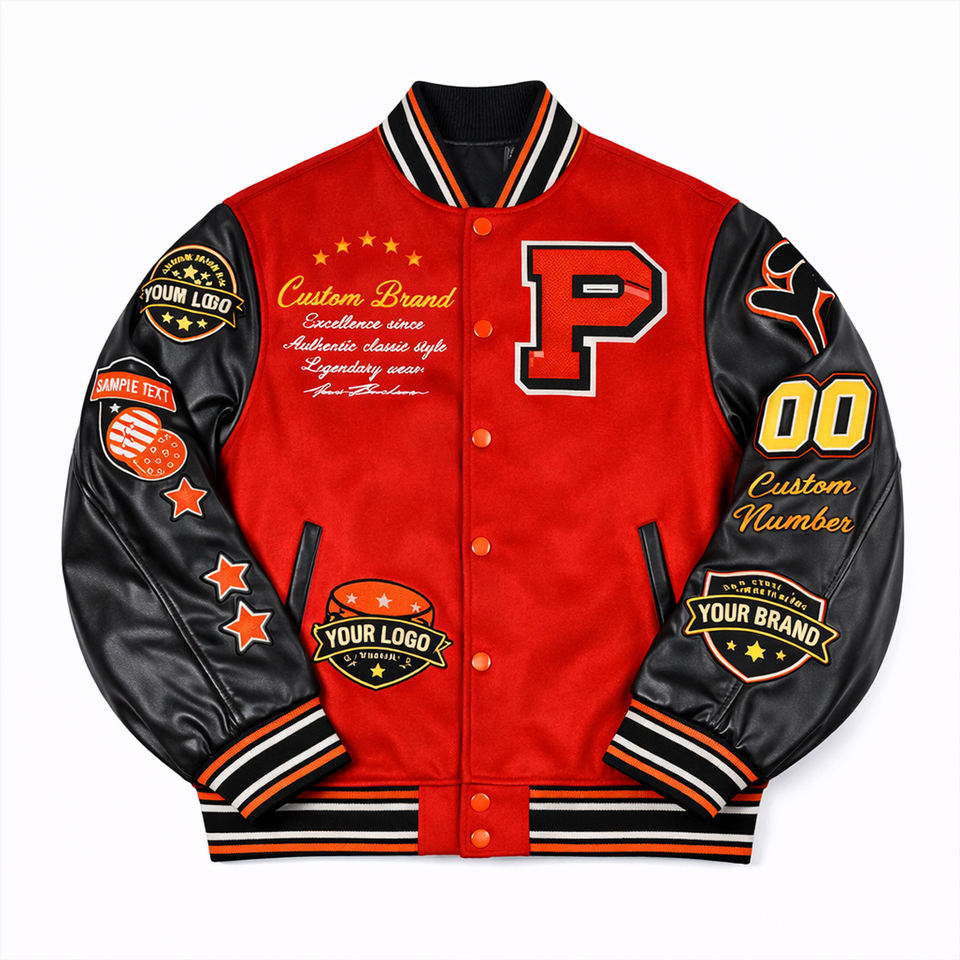 Veste universitaire personnalisée rouge et noire, style bomber, avec patch brodé, veste de baseball streetwear