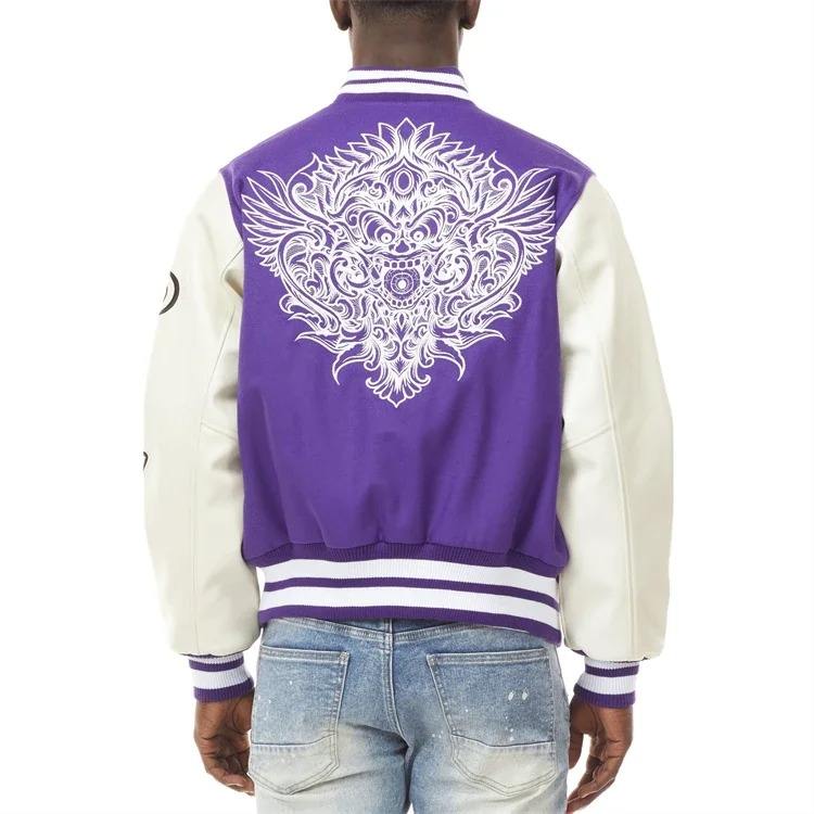 Veste universitaire personnalisée pour hommes manches en cuir plaine violet Lettermen Baseball veste pour hommes fabriquée en usine