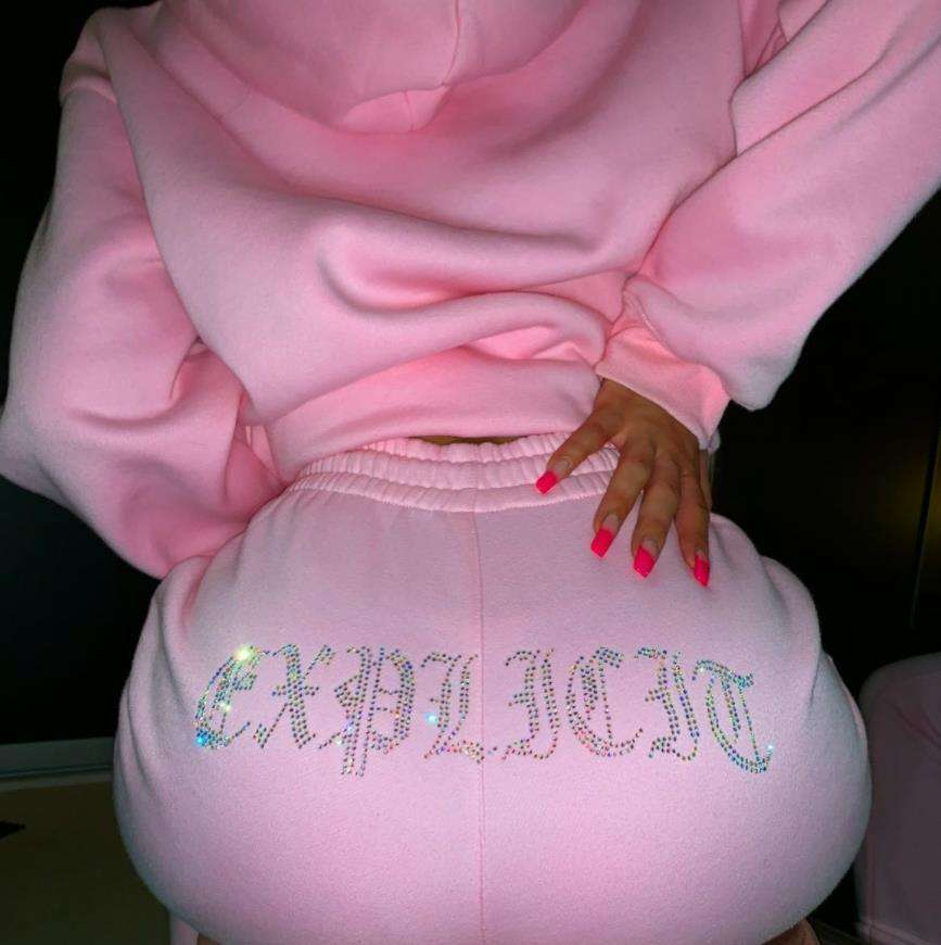 Survêtement d'hiver en velours personnalisé 100% coton molletonné pour femmes, logo en strass, sweat-shirt à capuche, pantalon de survêtement, mode Y2K, rose beige, ensemble deux pièces