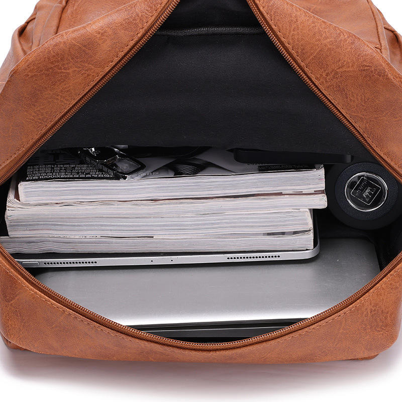 Sac à dos pour ordinateur portable vintage personnalisé de 16 pouces, en cuir PU souple pour hommes, grande capacité, style rétro, style professionnel, fermeture étanche