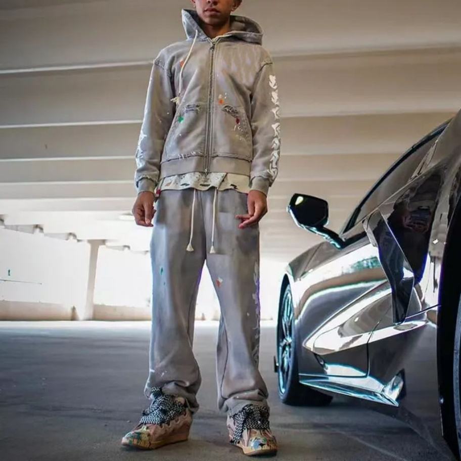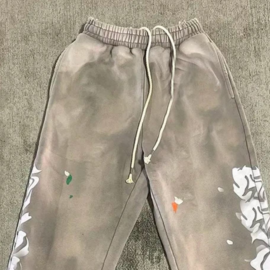 Pantalon de survêtement évasé pour homme en molleton de coton vierge, délavé à l'acide et décoloré par le soleil, avec logo brodé vintage personnalisé
