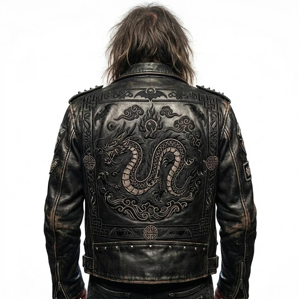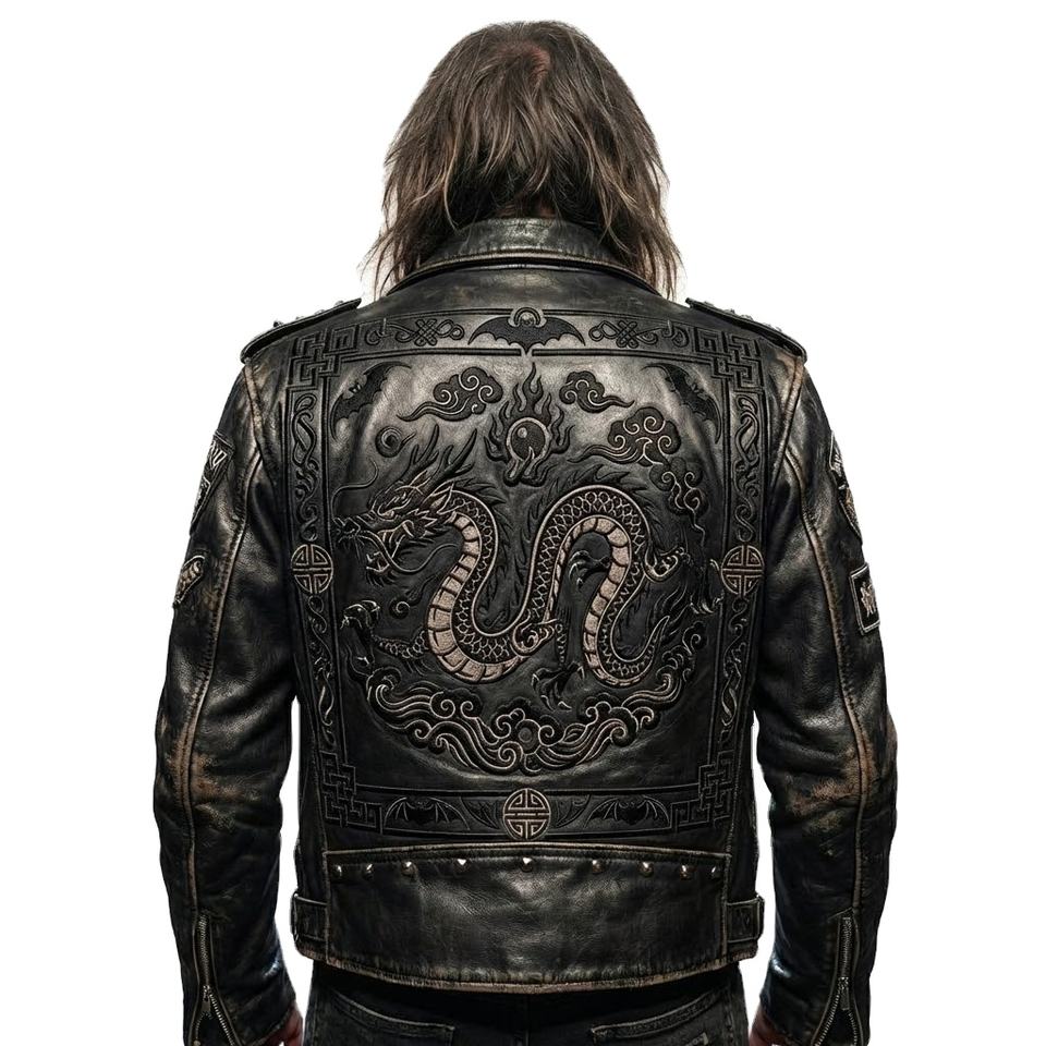 Blouson de motard en cuir vieilli personnalisé pour homme, avec broderie de dragon, style punk streetwear, vente en gros OEM