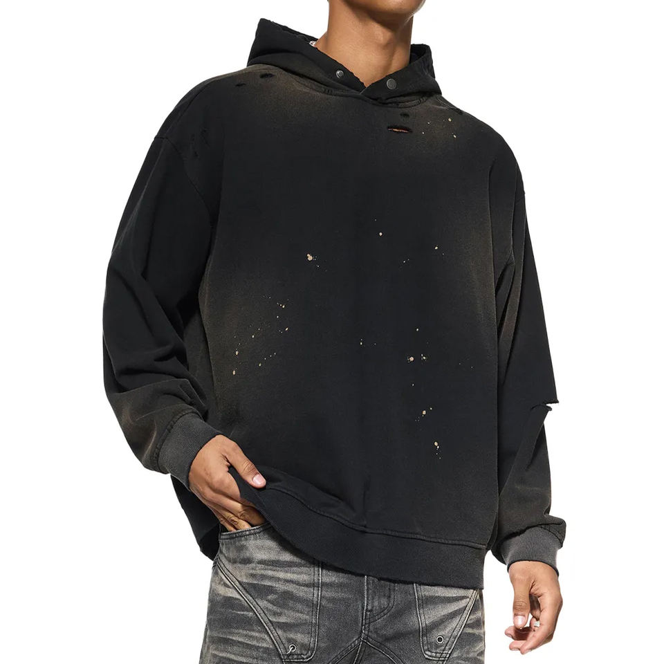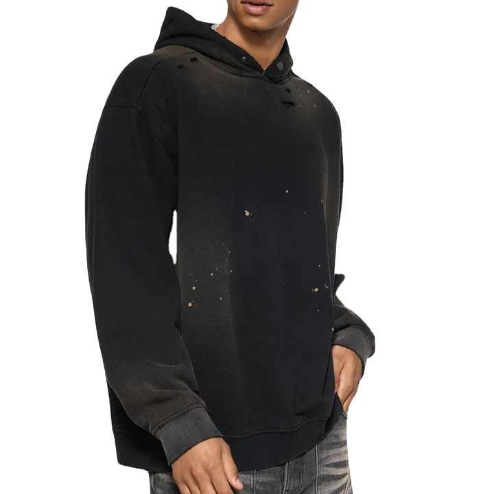 Sweat à capuche surdimensionné en molleton français avec boutons-pression métalliques vieillis style vintage, personnalisable, OEM, haute qualité, délavé à l'acide pour homme