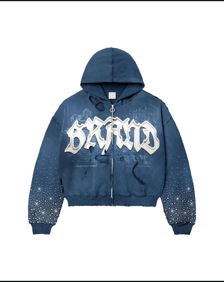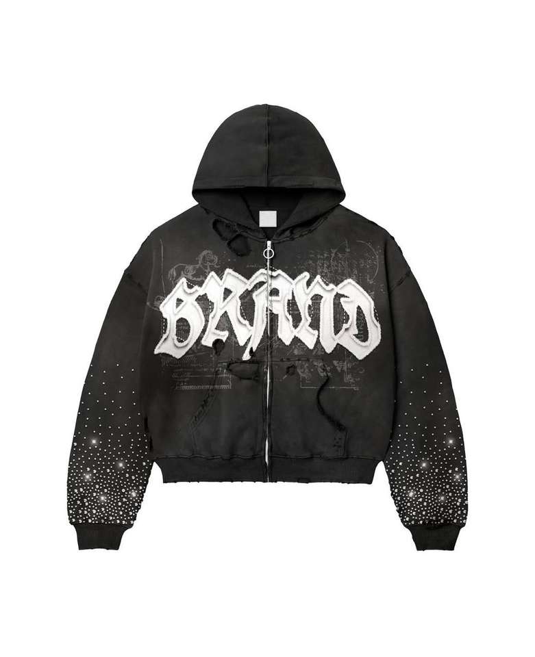 Sweat-shirt vintage personnalisé à fermeture éclair, brodé de strass, streetwear, sérigraphie, délavé à l'acide, coupe oversize, 100% coton, haute qualité