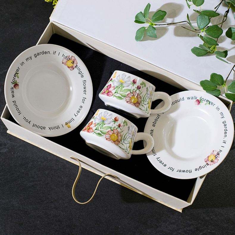 Service à thé personnalisé en porcelaine céramique motif tournesol vintage français, écologique, avec boîte cadeau haut de gamme pour le thé de l'après-midi, idéal pour les entreprises