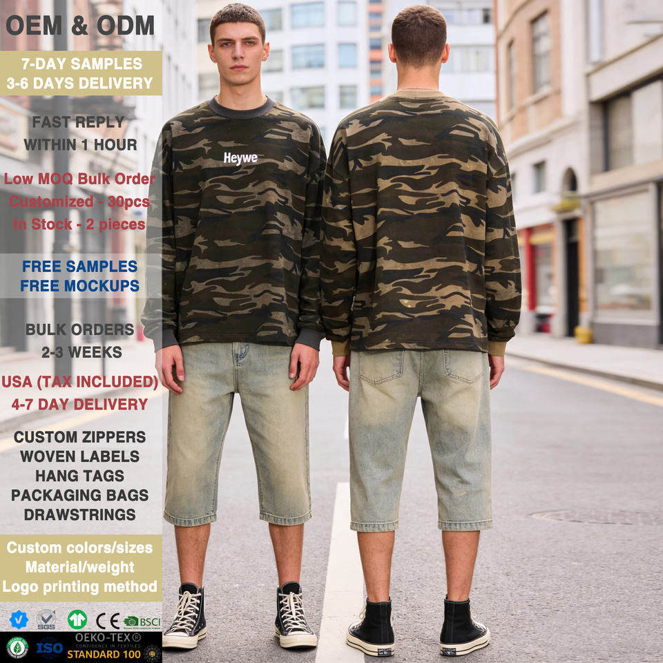 Chemises à manches longues pour hommes imprimées camouflage vintage de haute qualité, t-shirts pour hommes en coton 100% de qualité supérieure, design de créateur