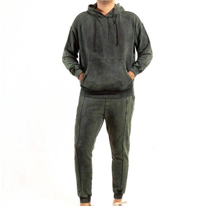 Ensemble de jogging vintage personnalisé survêtement délavé à l'acide survêtement à capuche et pantalon de survêtement évasé à jambe droite survêtement pour hommes
