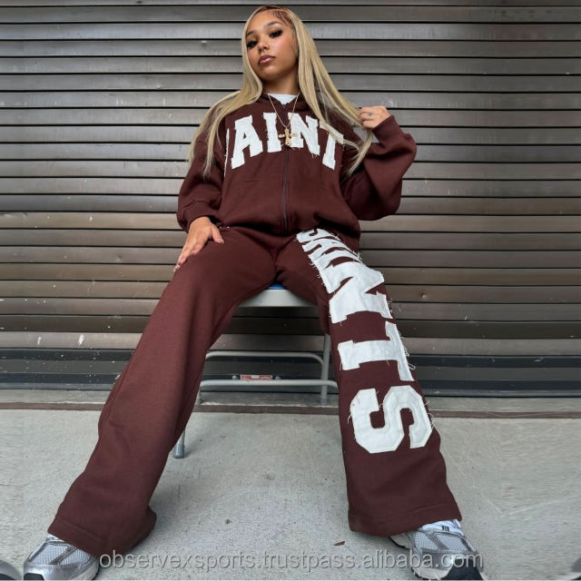 Streetwear d'hiver vintage personnalisé, ensemble de jogging avec fermeture éclair et délavage à l'acide, sweat à capuche, pantalon de survêtement évasé à jambe droite, pantalon de survêtement unisexe