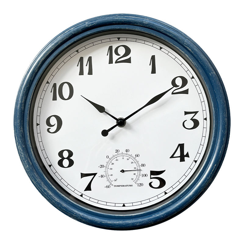 Horloge murale rétro étanche à quartz ronde et silencieuse personnalisée avec thermomètre Fabricant d'horloge ancienne en plastique pour l'extérieur