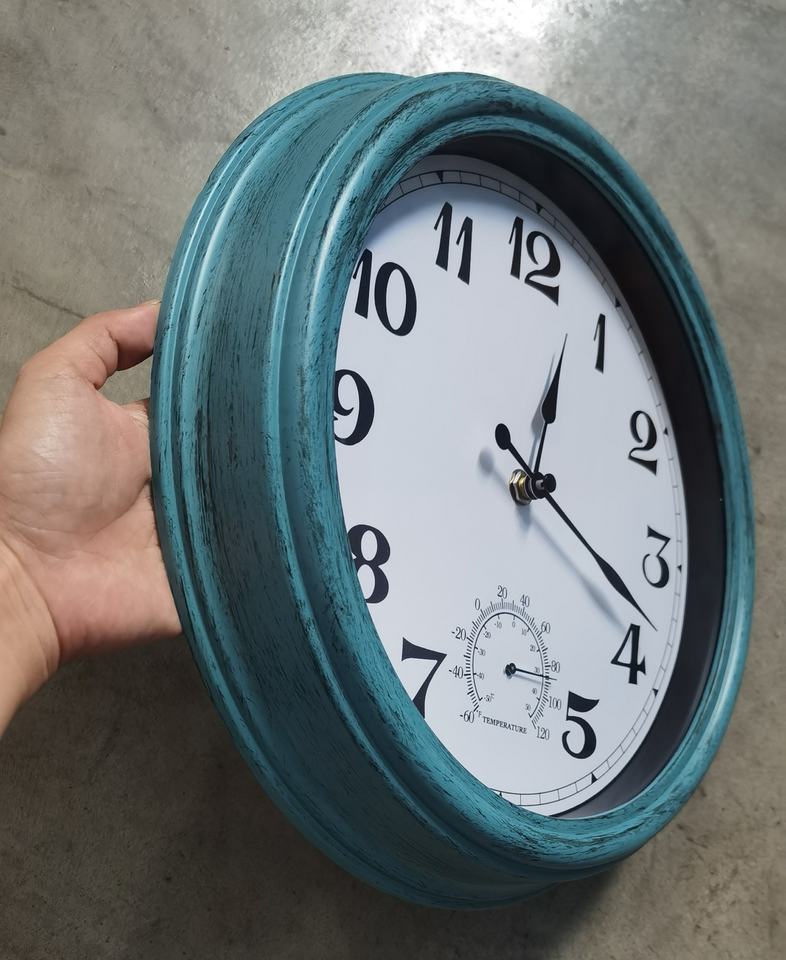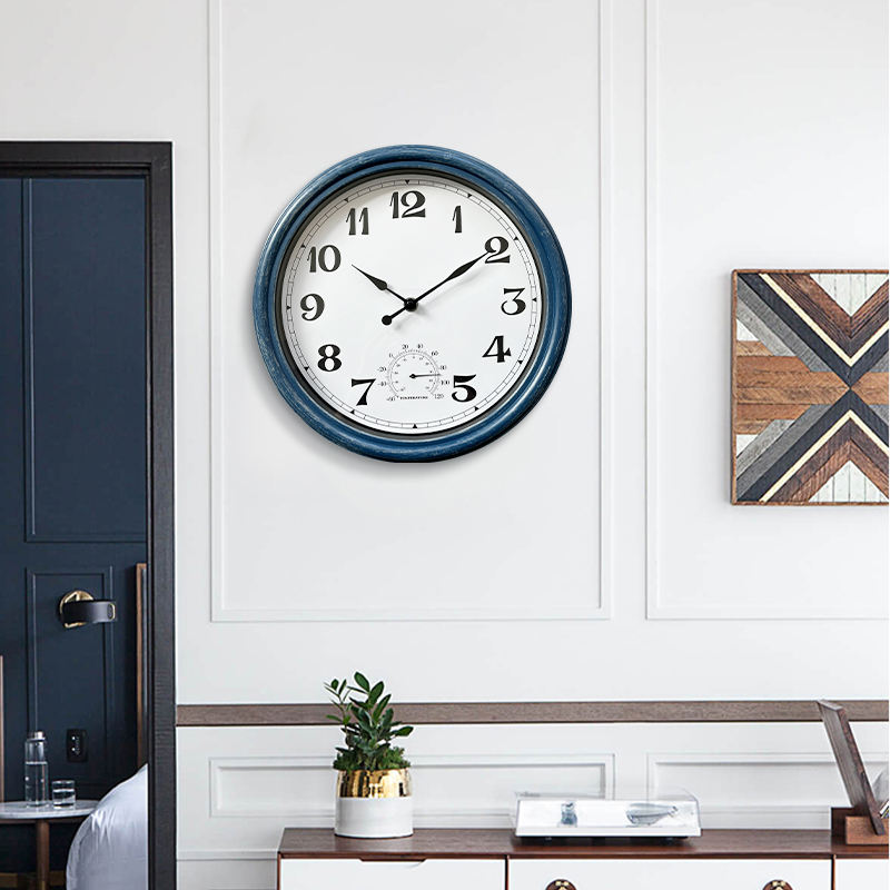 Horloge murale rétro ronde silencieuse à quartz personnalisée vintage avec thermomètre en plastique ancienne horloge extérieure étanche fabricant usine