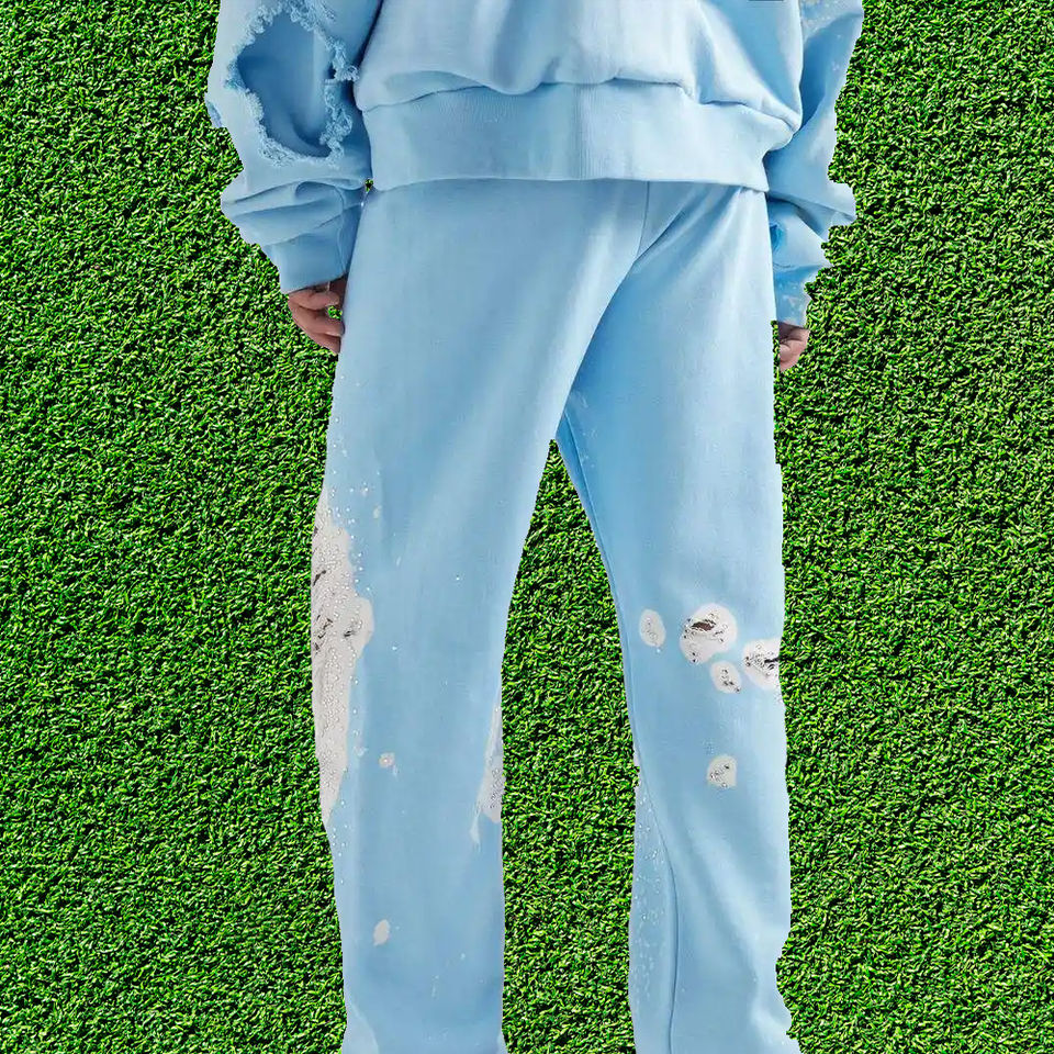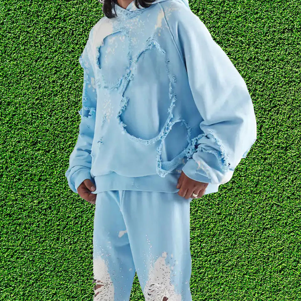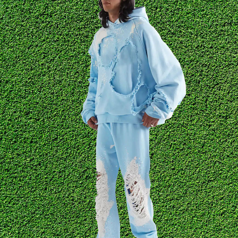Ensemble survêtement homme personnalisé vintage printemps, broderie vieillie, fermeture éclair, coupe ample, sweat à capuche et pantalon de survêtement, effet délavé soleil et délavé à l'acide