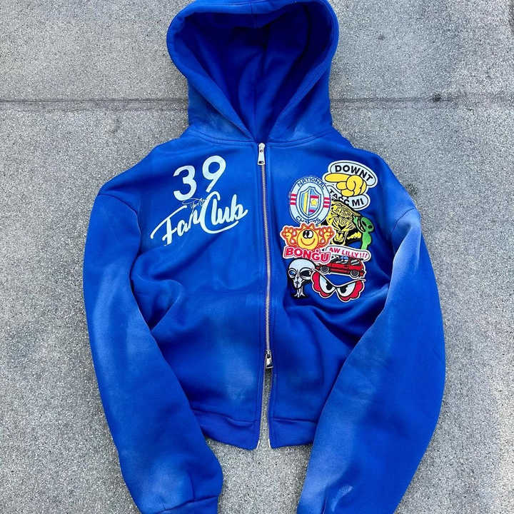Personnalisé Vintage Stone Acid Wash Zip up Imprimer Sun Faded Broderie Patch Distressed Cropped Hooded pour Hommes